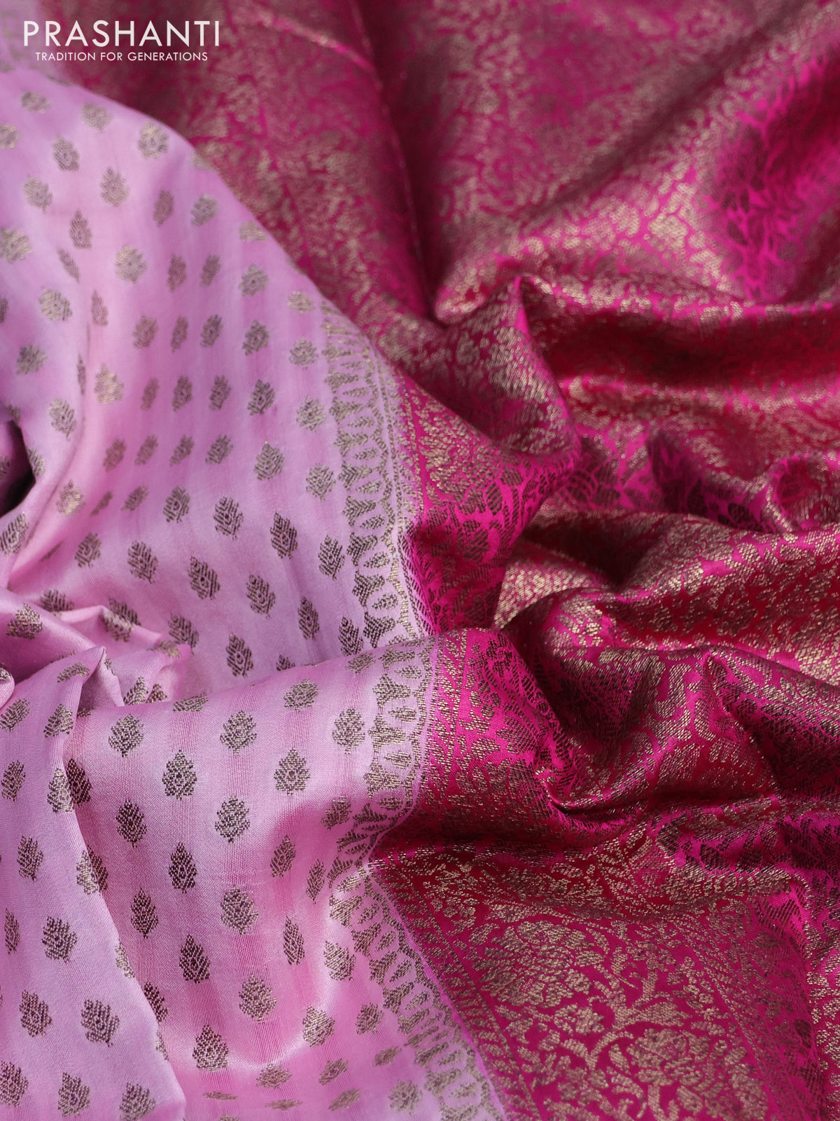 Chiniya silk saree light pink and pink with allover thread & zari woven buttas and banarasi style border