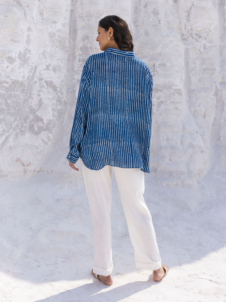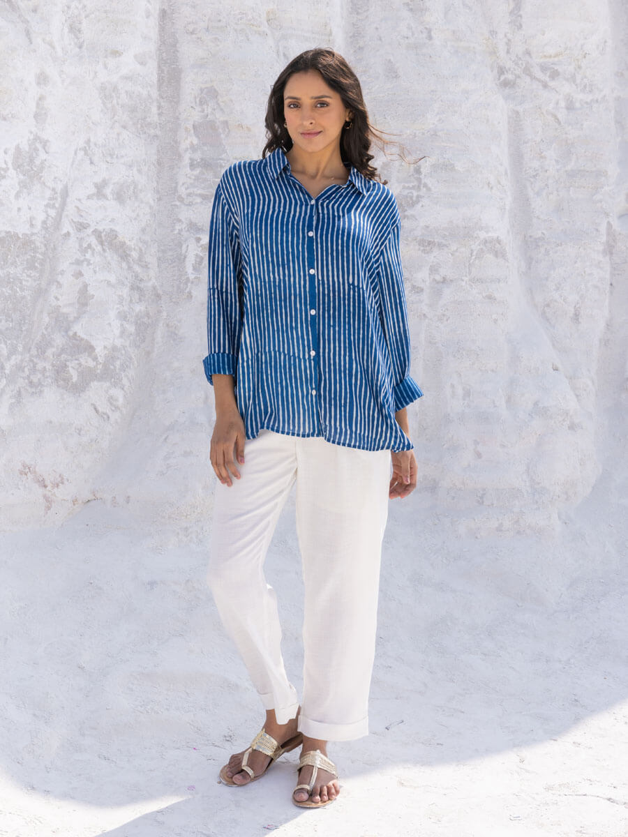 • At Pinklay, we pre-wash our Indigo garments 7-8 times before dispatch, yet there is a possibility for it to run colour in the first few washes, or run against the skin and light-coloured garments in extreme heat and moisture situations. This running of colour is harmless, characteristic of Indigo dyeing and generally does not fade the garment. For detailed step-by-step instructions, watch our Wash Care Guide for indigo merchandise.