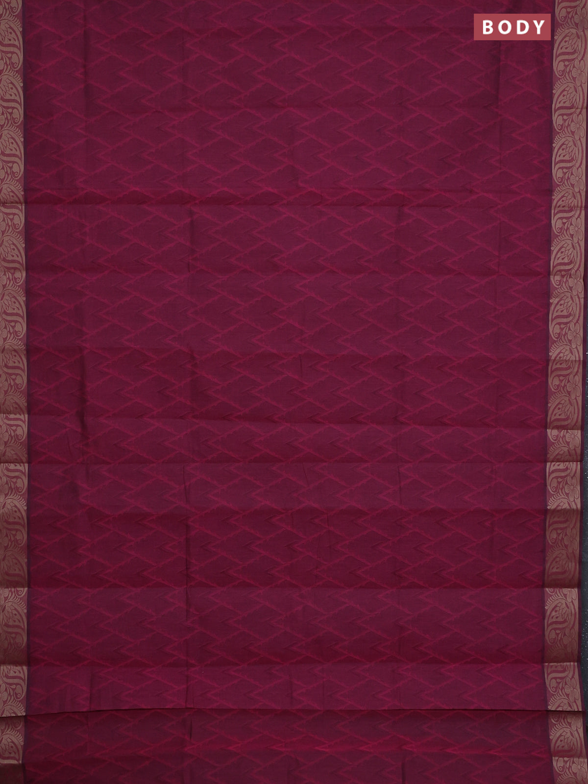 Coimbatore cotton saree dark magenta pink with allover self emboss and thread woven border