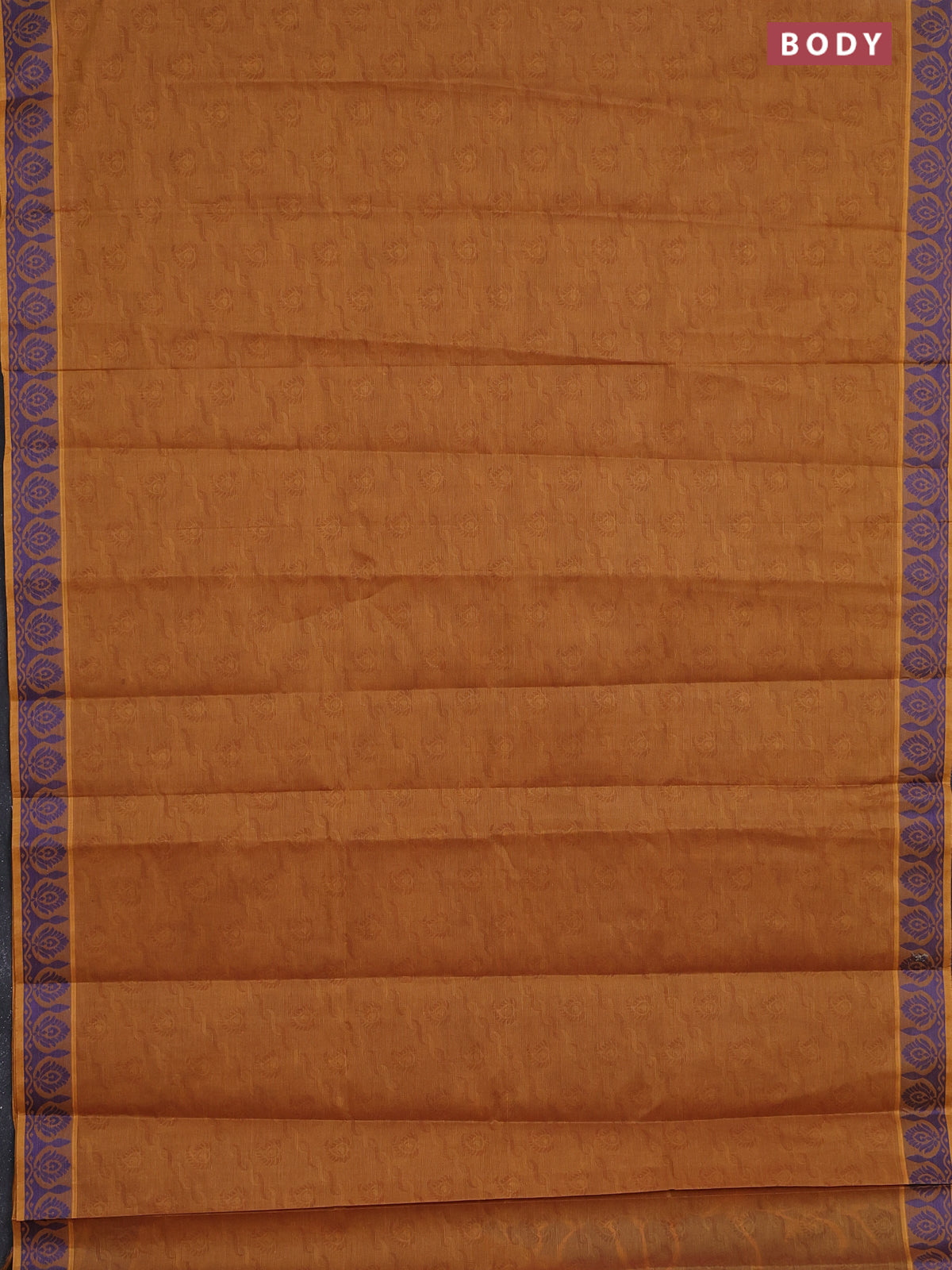Coimbatore cotton saree dark mustard and blue with allover self emboss and thread woven border