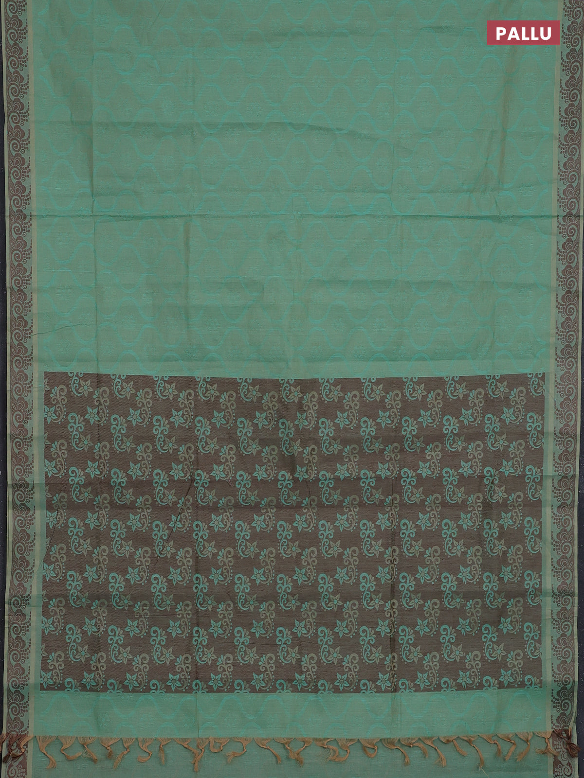 Coimbatore cotton saree dual shade of teal blue and coffee brown with allover self emboss and thread woven border