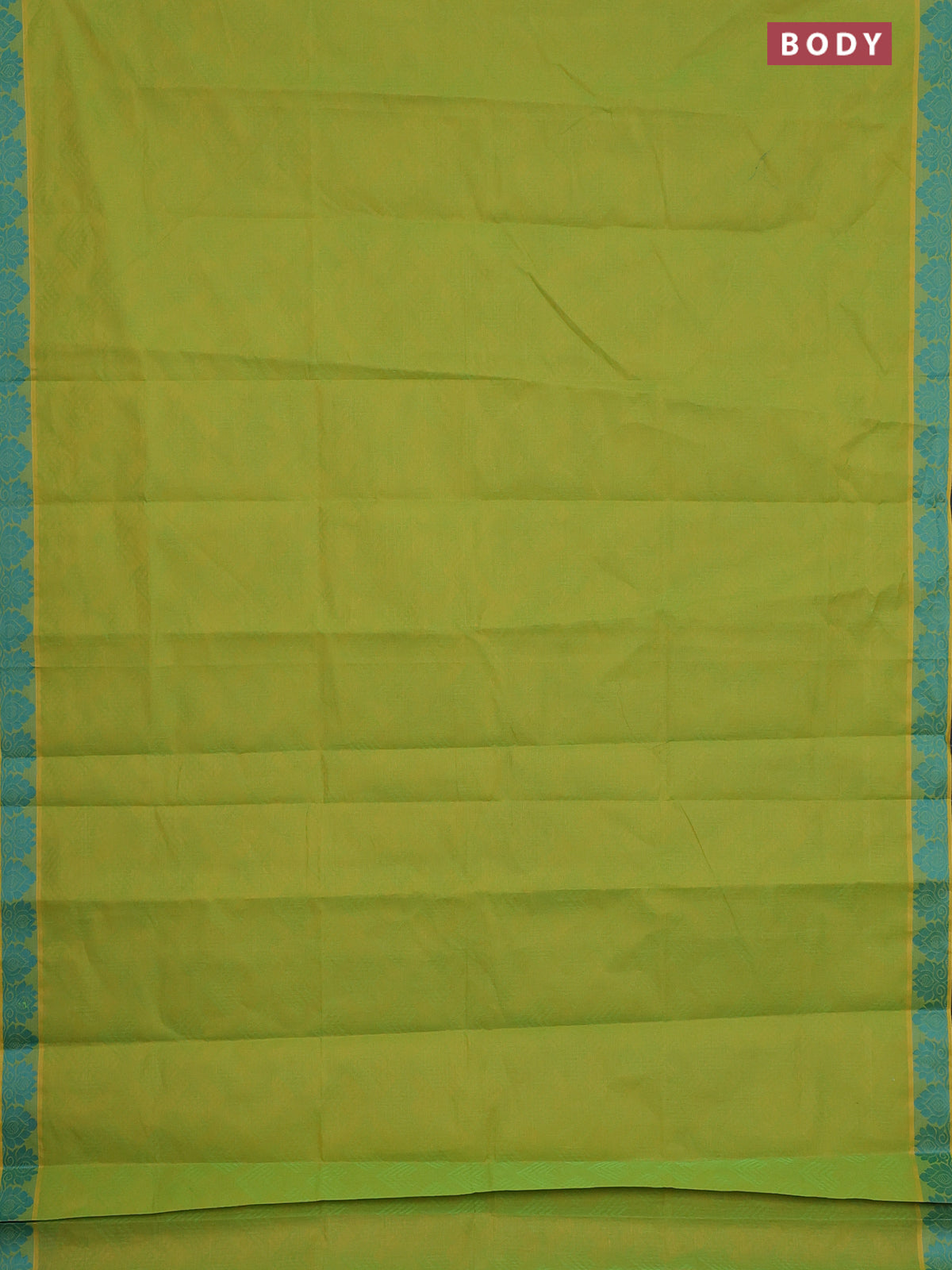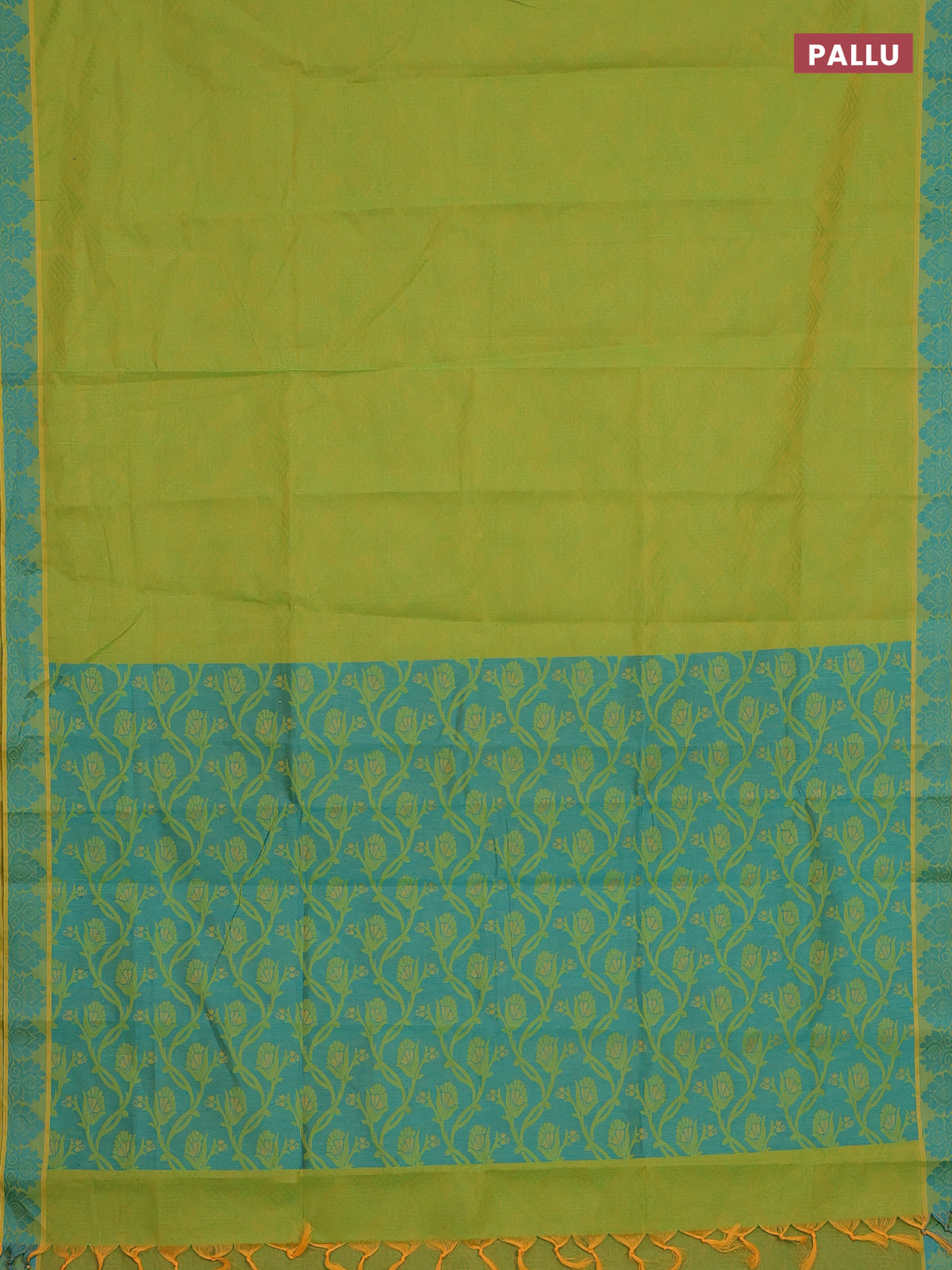 Coimbatore cotton saree light green and teal blue with allover self emboss and thread woven border