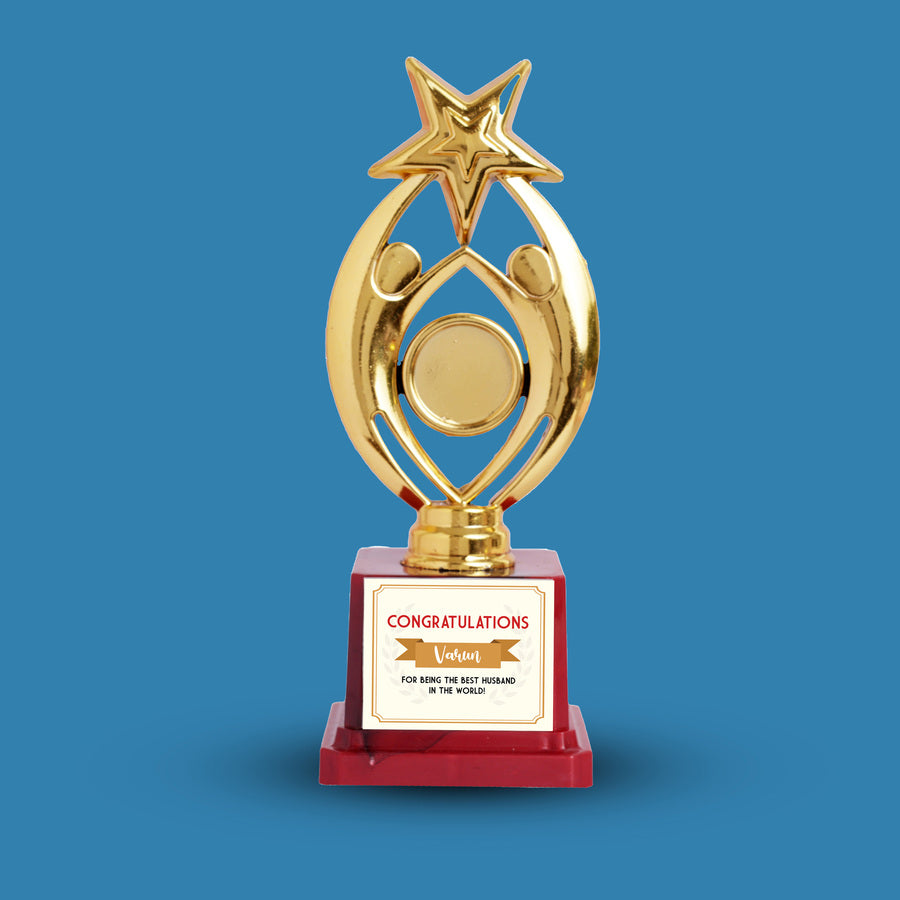 There’s something special about having a husband who’s also your biggest cheerleader, best friend, and go-to person. Whether he’s fixing things around the house or lifting your mood after a long day, you love how much he cares for you. Here's a trophy to tell him that he is the best husband everrr!! Add his name and give him a reason to smile every time he sees it on his desk or shelf.