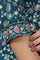 Corsair Blue Foil Floral Printed Pure Cotton Flared Kurta with Embroidered Neck