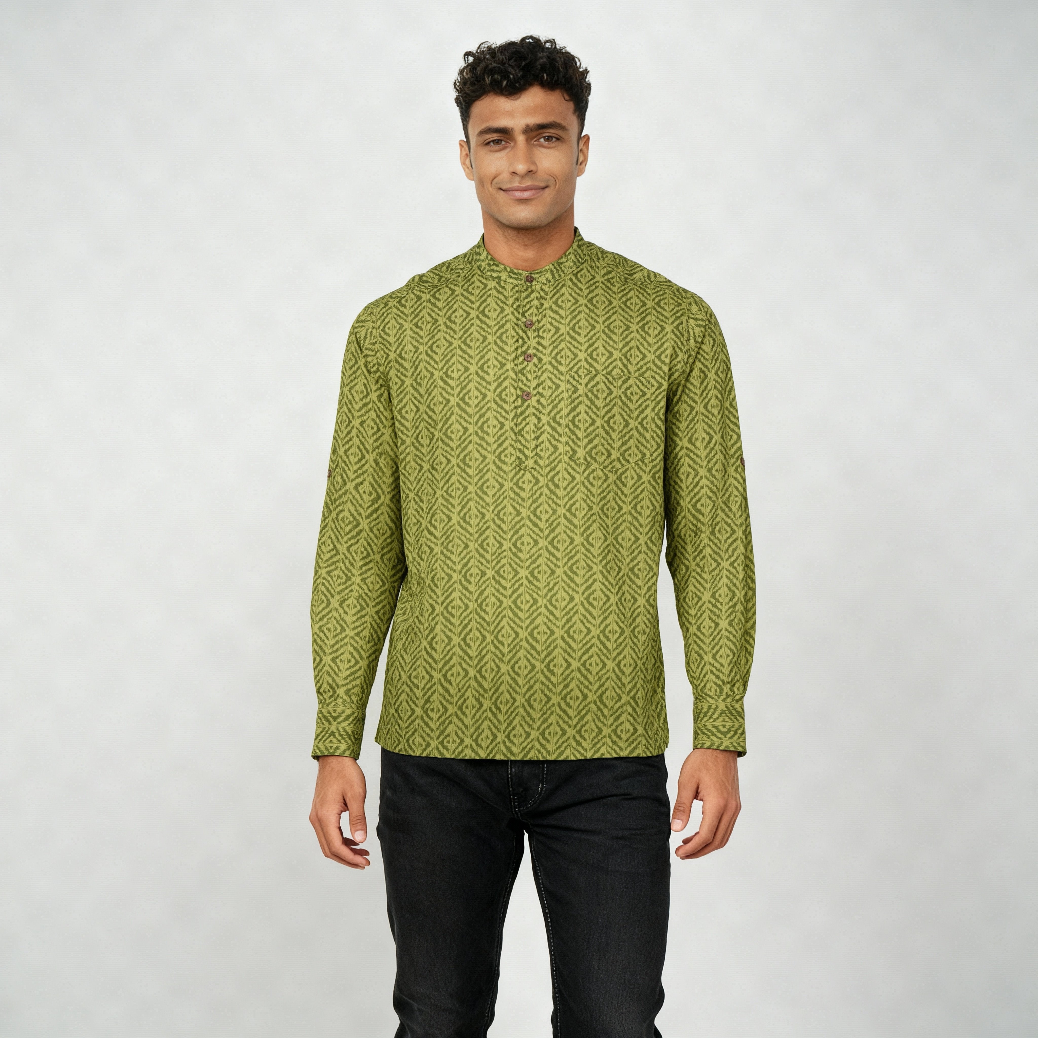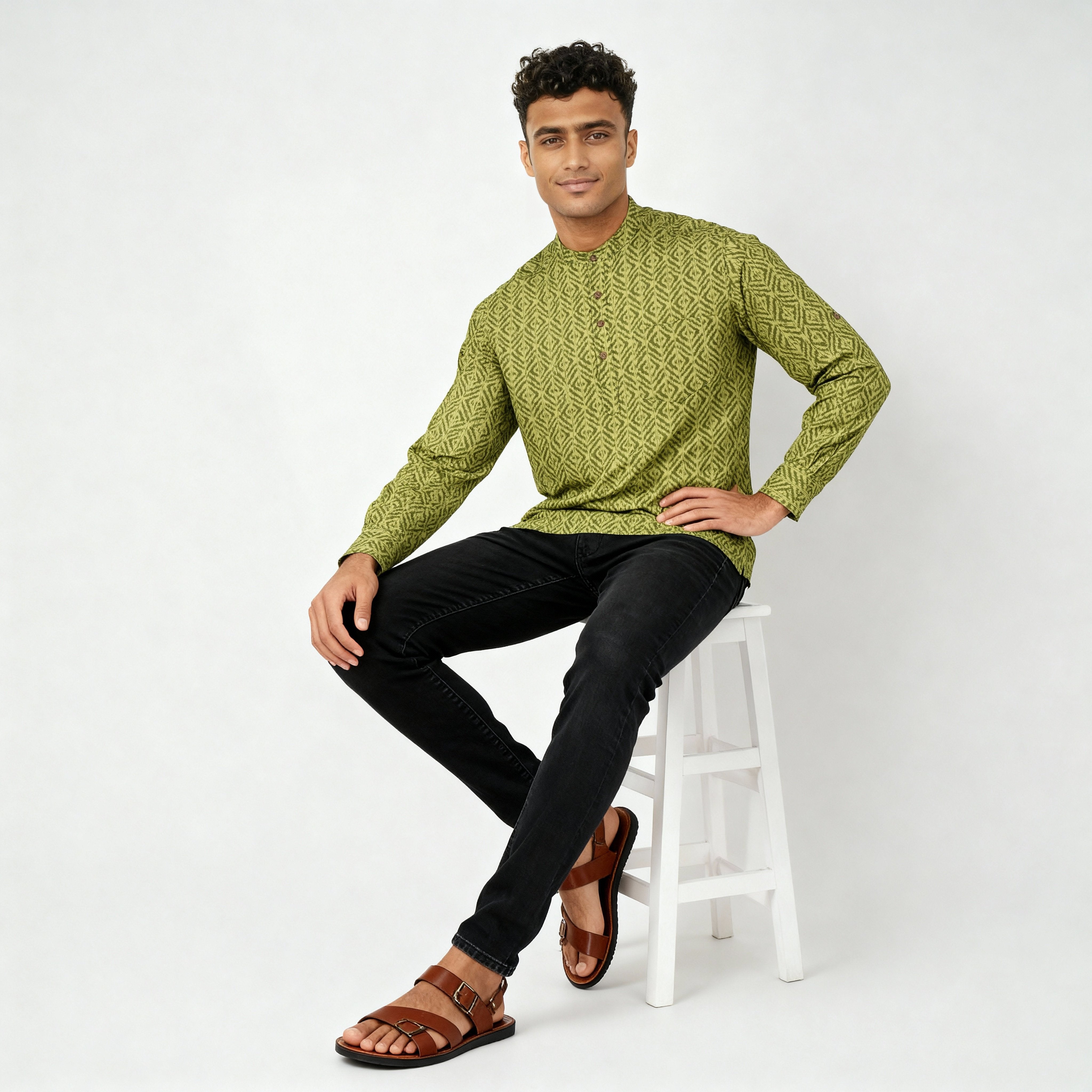 Elevate your wardrobe with our Cotton Printed Short Kurta, a stylish choice for modern men. Crafted from high-quality woven cotton, this kurta combines comfort with contemporary design for a versatile look.