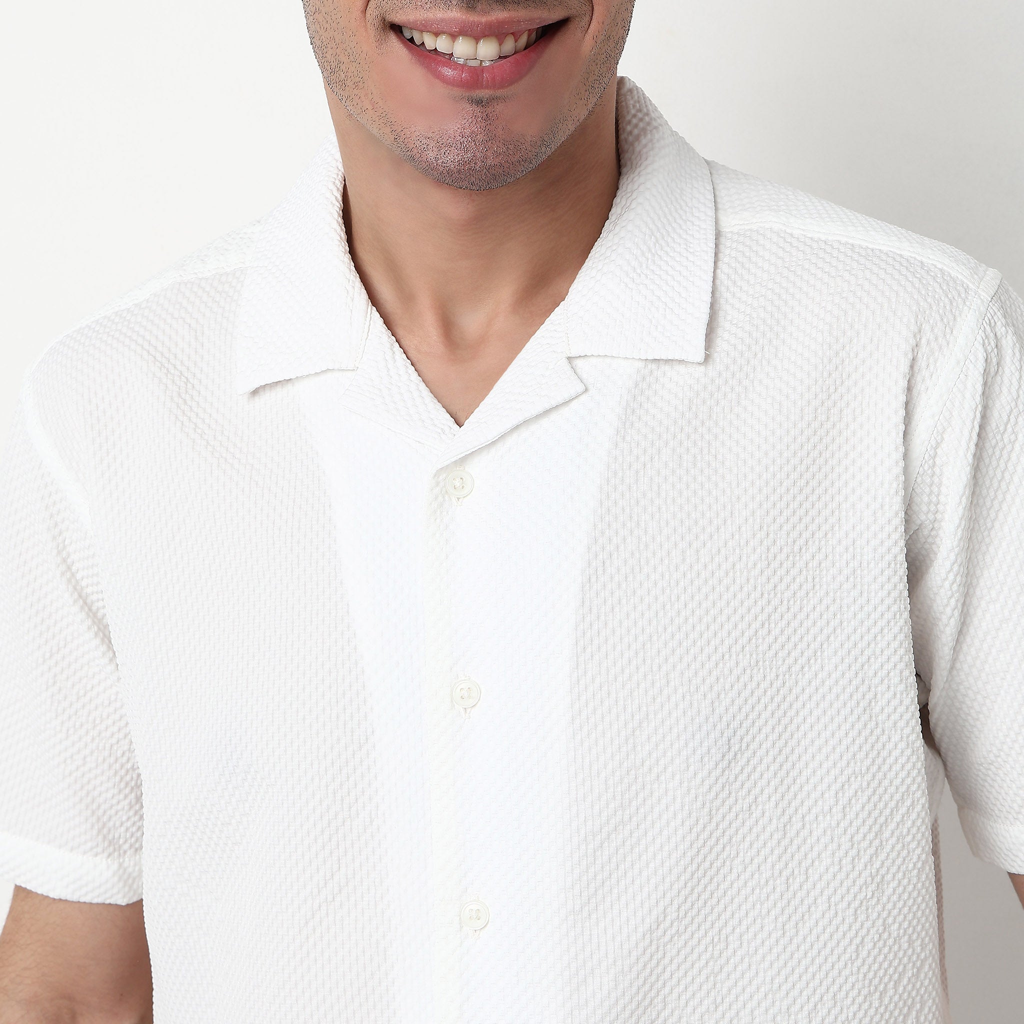 Experience the perfect blend of comfort and style with our Cotton Fabric Structured Shirt. Crafted from 100% cotton, this shirt offers a soft touch against your skin while ensuring breathability throughout the day. The structured pattern adds a touch of sophistication, making it versatile for both casual outings and semi-formal events. The camp collar and half sleeves provide a relaxed yet polished look, perfect for warm weather.