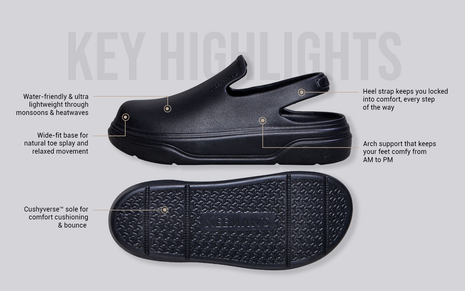 Our first-ever Clogs had to be special. Presenting the Cushers - Crafted for your feet's love for cushioning! With our uniquely engineered Cushyverse™ technology, the Cushers Clogs bring bounce, support, and comfort extending from mid-foot to heels to your sole.