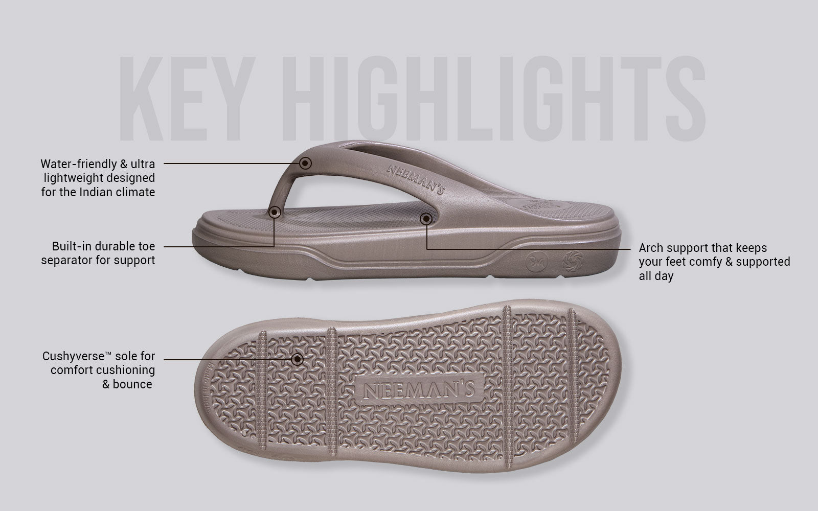 Presenting the Cushers - Crafted for your feet's love for cushioning! With our uniquely engineered CushyVerse™ technology, the Cushers flip flops bring bounce, support, and comfort that extends from the mid-foot to the heels and sole.