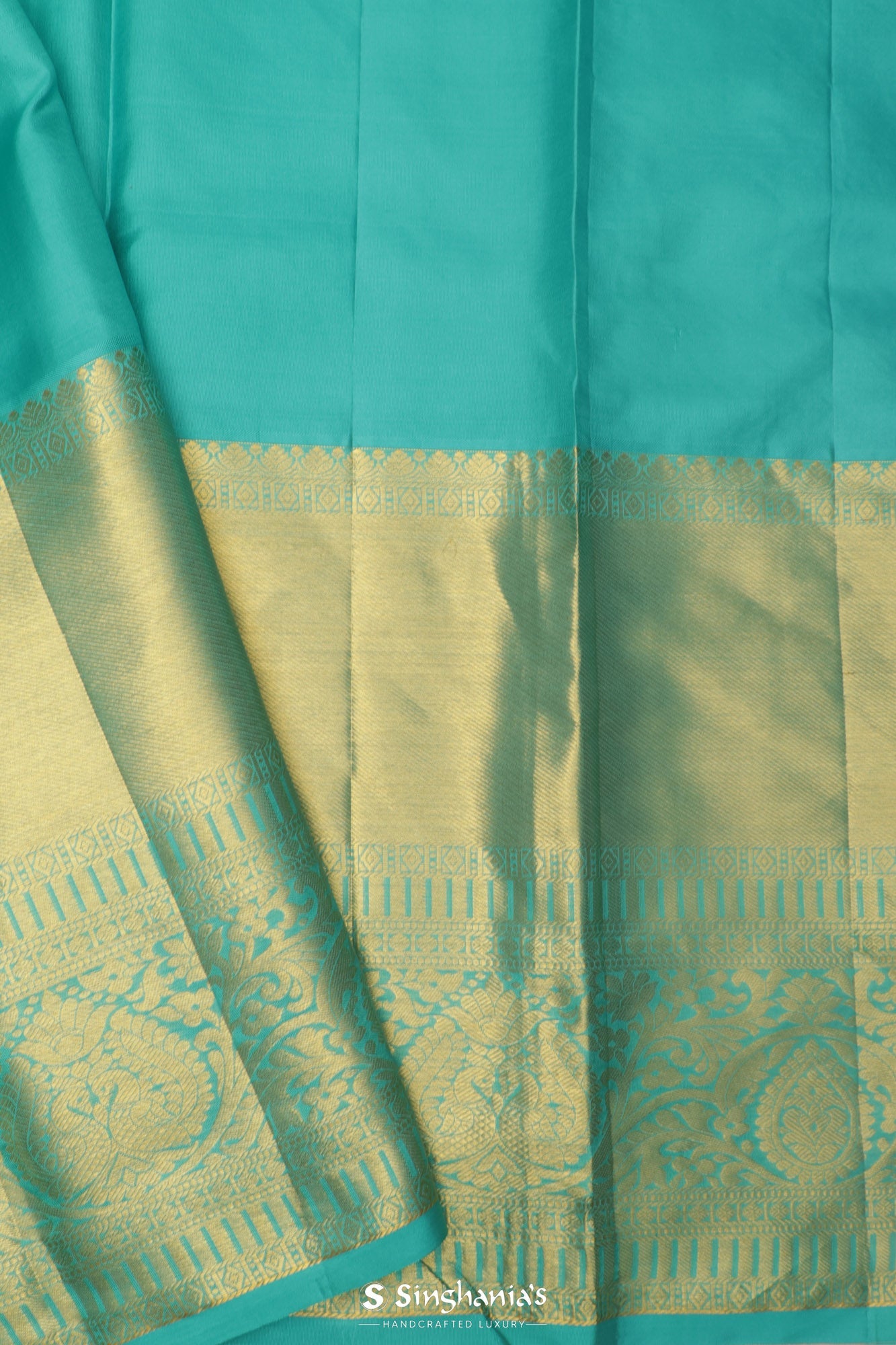 Exude royalty in this rich Dark Magenta Purple Kanjivaram Silk Saree ornamented with intricate gold zari woven floral jaal design. The contrasting aqua blue border with floral and kaddi pattern elevates the elegance. Perfect for festive celebrations.