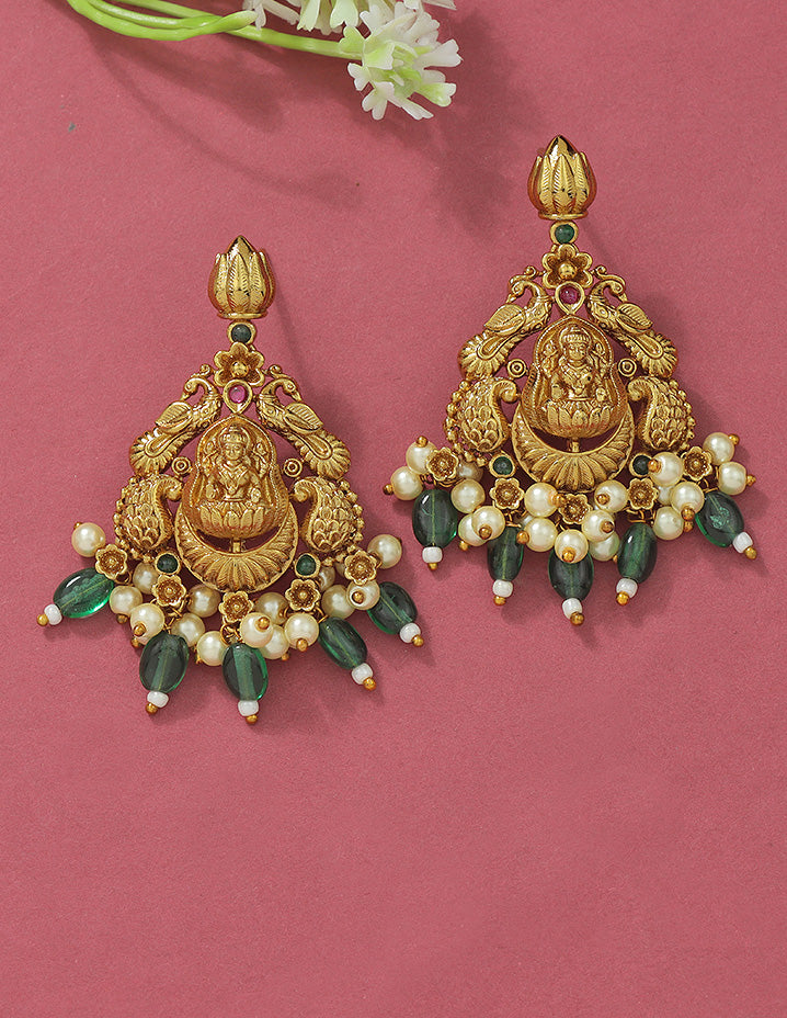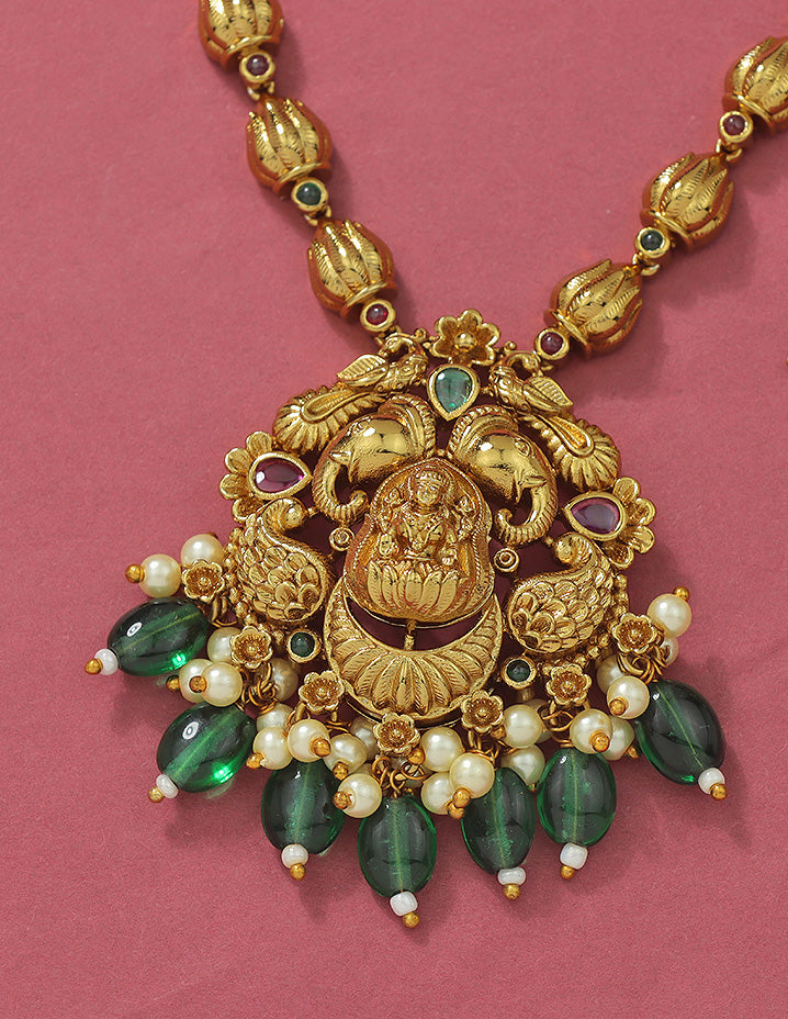 Designer Lakshmi Devi Emerald Matt Kempu Necklace Set
