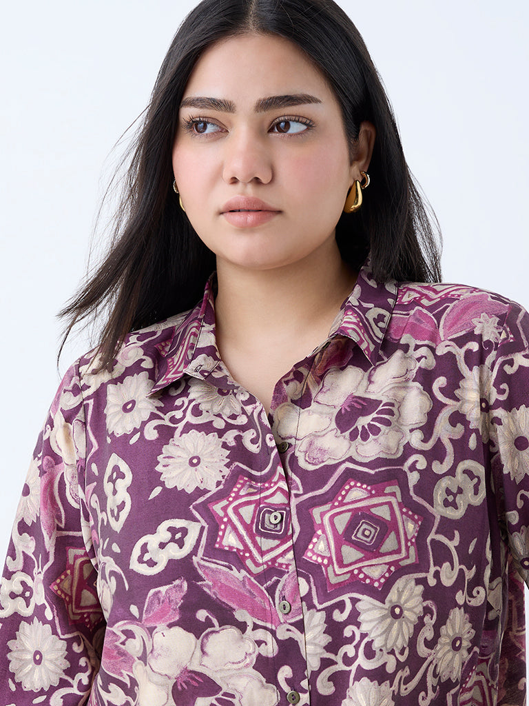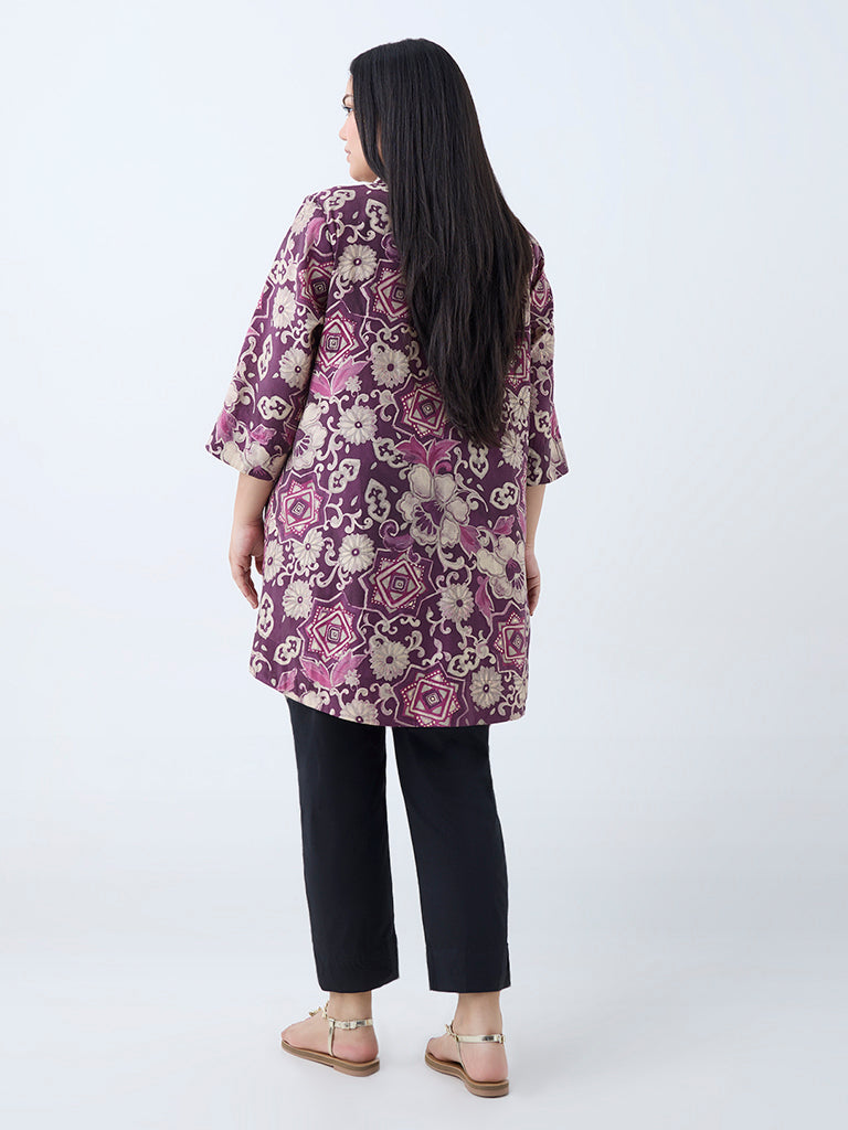 Refine your ethnic style with this plum tunic from Diza. Featuring floral prints all over, it is styled with a collar, a buttoned placket and three-quarter sleeves. The lightweight fabric ensures breathable comfort for all-day wear.