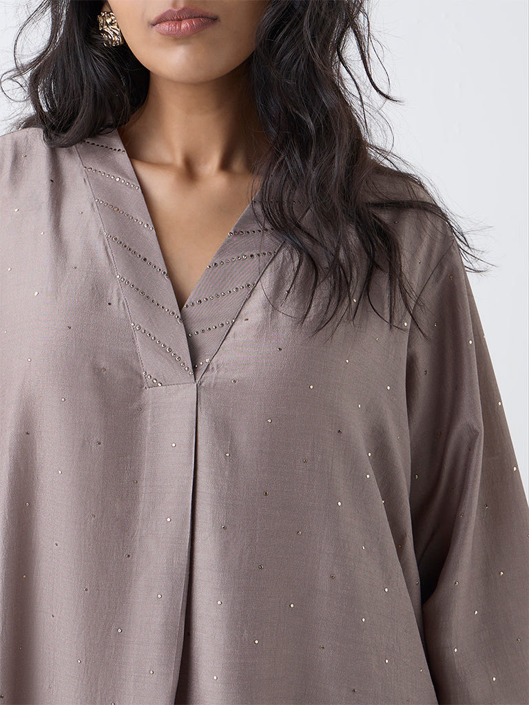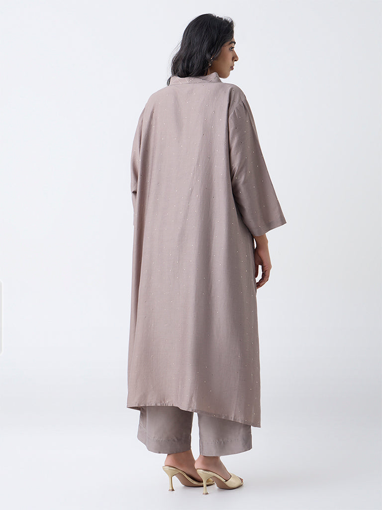 Diza Taupe Embellished A-Line Kurta