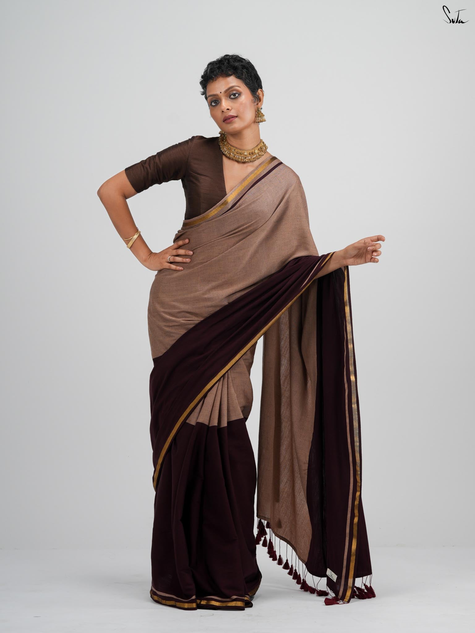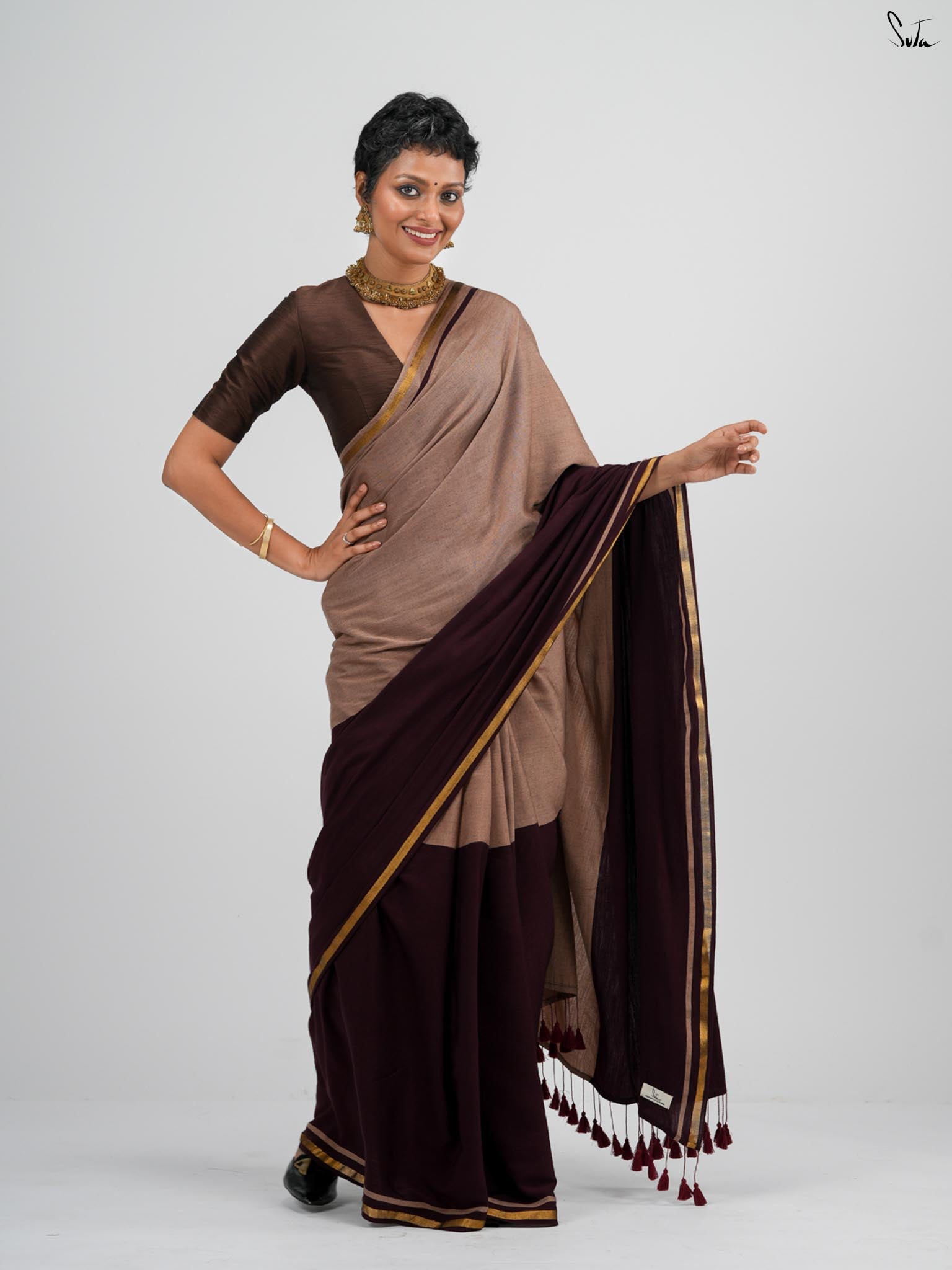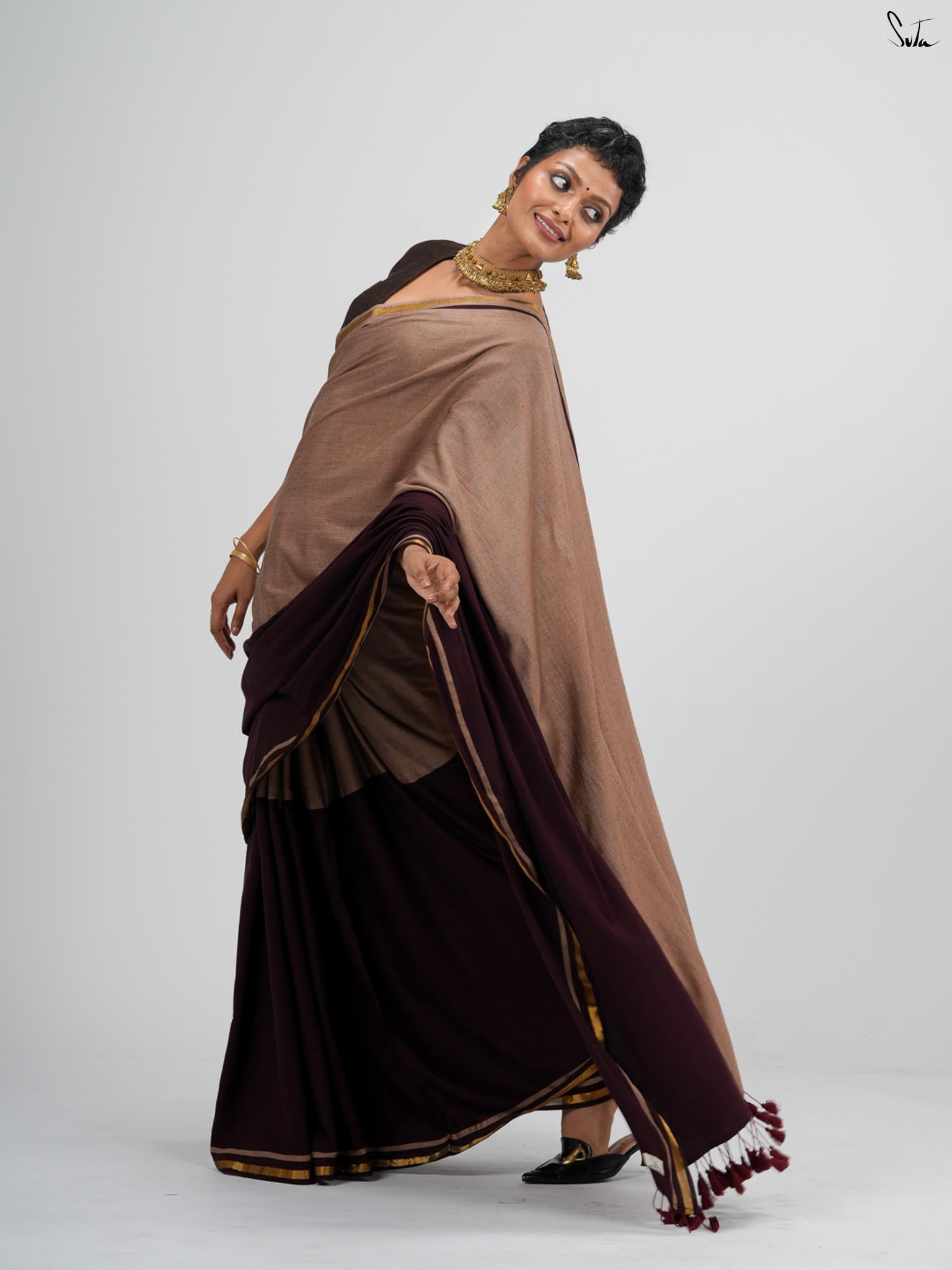 Cotton fabric dates back to some of the most ancient civilisations and it has a strong presence in the modern wardrobe as well. The softness and lightness of cotton combined with its strength and versatility makes it one of the most popular choices, especially for the Indian climate. We took this simple, elegant fabric and combined it with acrylic for that added sheen and voila! We love what we see and the saree falls so  beautifully that it feels like second-skin!