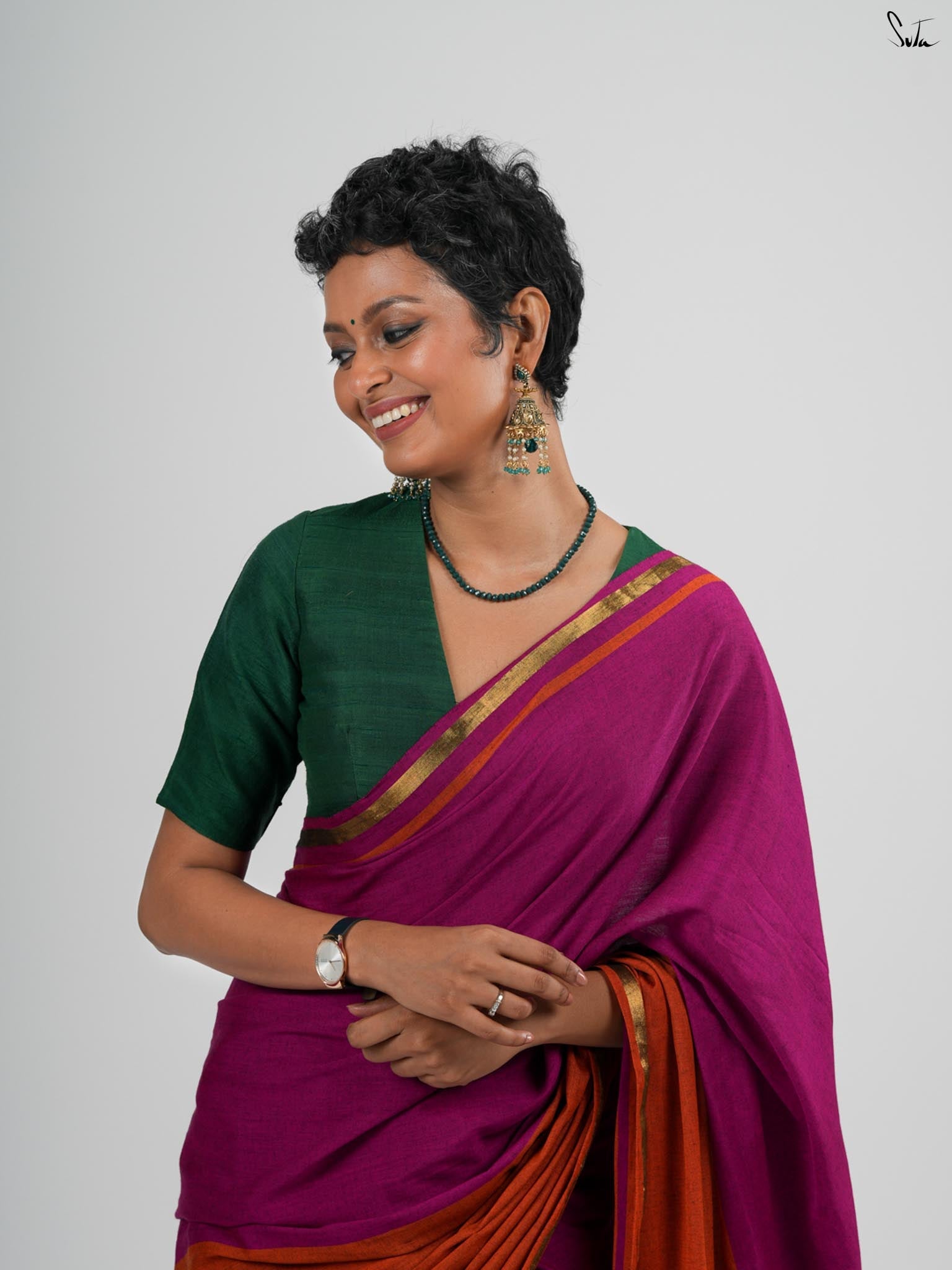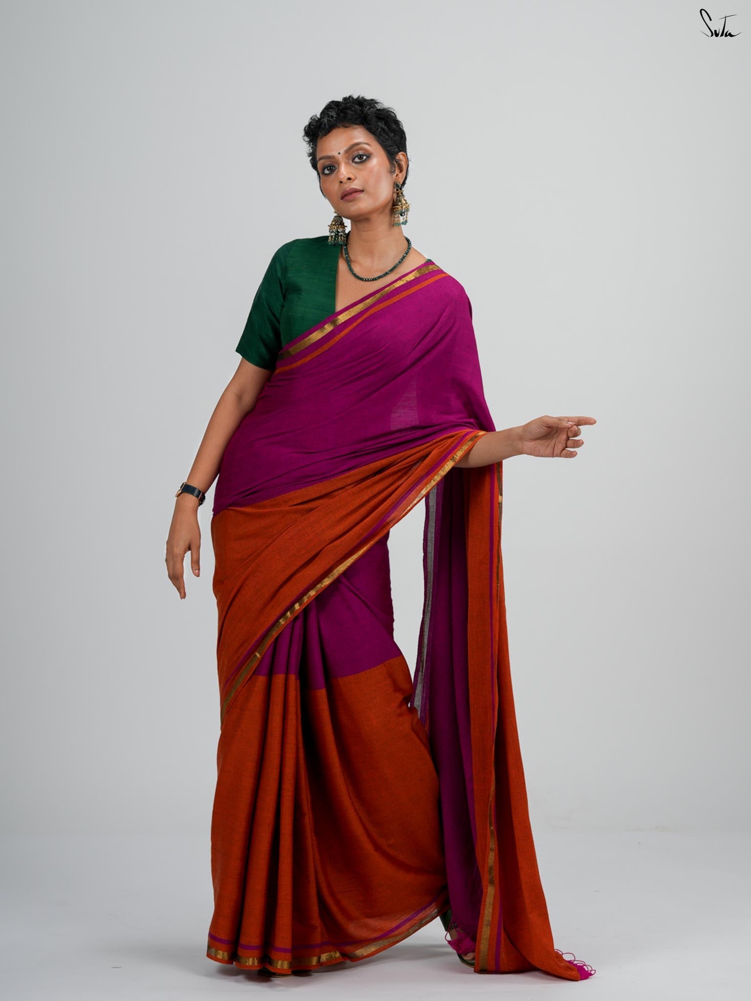 Cotton fabric dates back to some of the most ancient civilisations and it has a strong presence in the modern wardrobe as well. The softness and lightness of cotton combined with its strength and versatility makes it one of the most popular choices, especially for the Indian climate. We took this simple, elegant fabric and combined it with acrylic for that added sheen and voila! We love what we see and the saree falls so beautifully that it feels like second-skin!