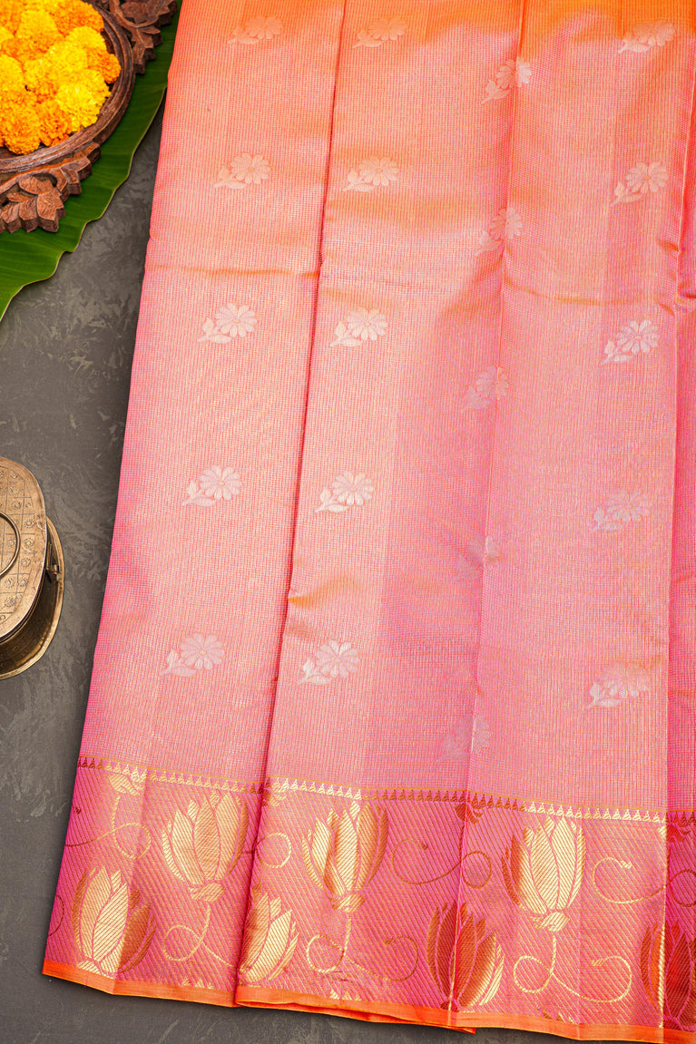 Latest DUAL SHADE CHECKS AND BUTTIS SILK BLEND Saree with SELF ZARI border. This saree comes with PLAIN WITH BORDER SILK BLEND blouse.
