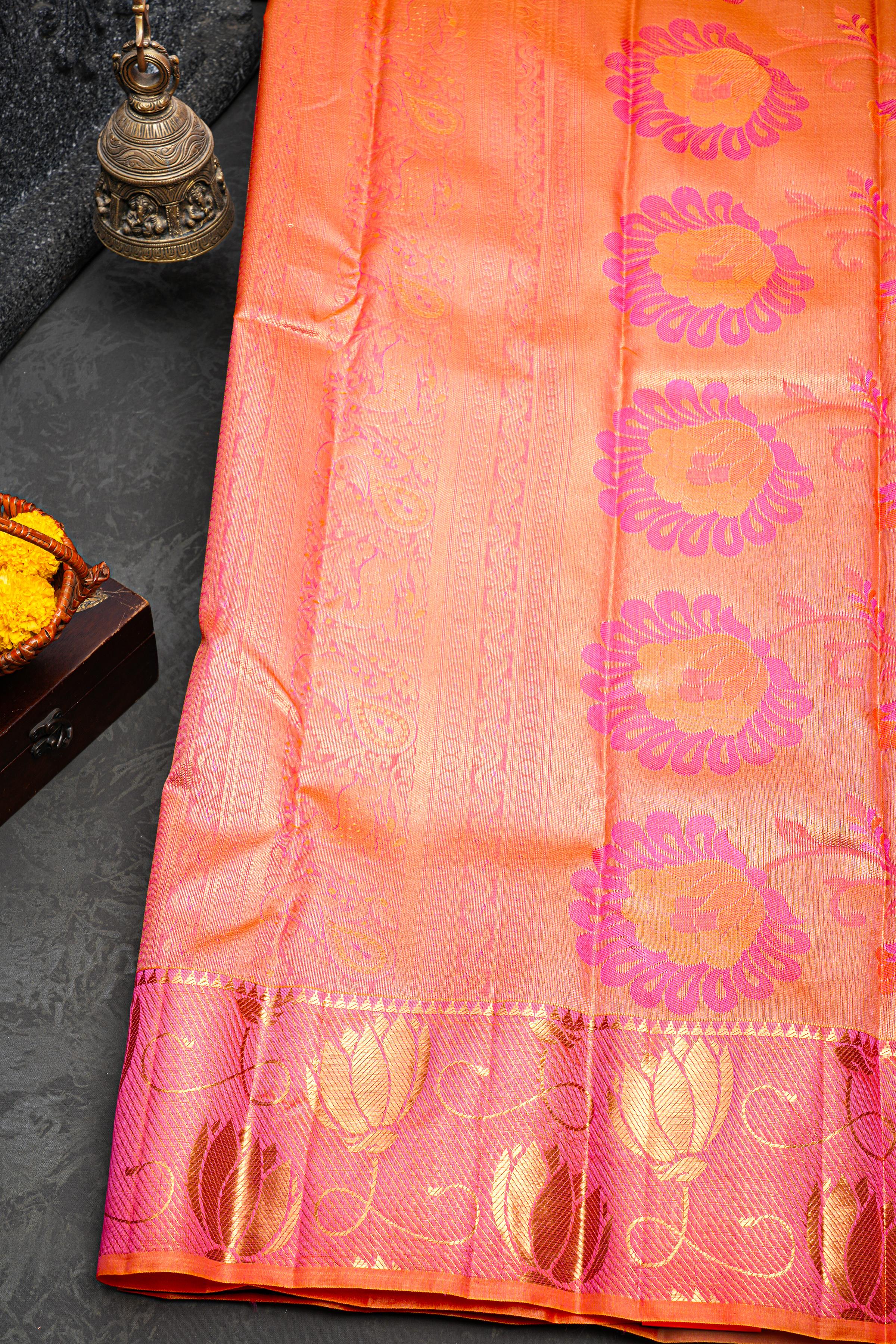 DUAL SHADE and LIGHT ORANGE BUTTIS SILK BLEND Saree with SEMI PATTU