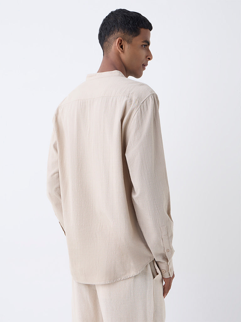 ETA Beige Self-Patterned Relaxed-Fit Cotton-Blend Shirt