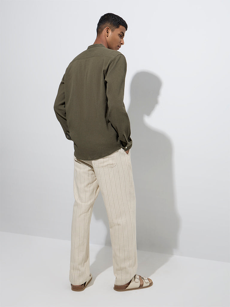 ETA Beige Striped Relaxed-Fit Mid-Rise Cotton Chinos