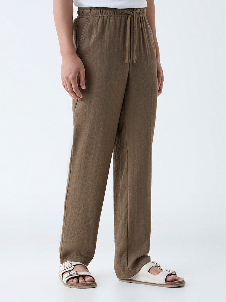 ETA Brown Solid Relaxed-Fit Mid-Rise Pants