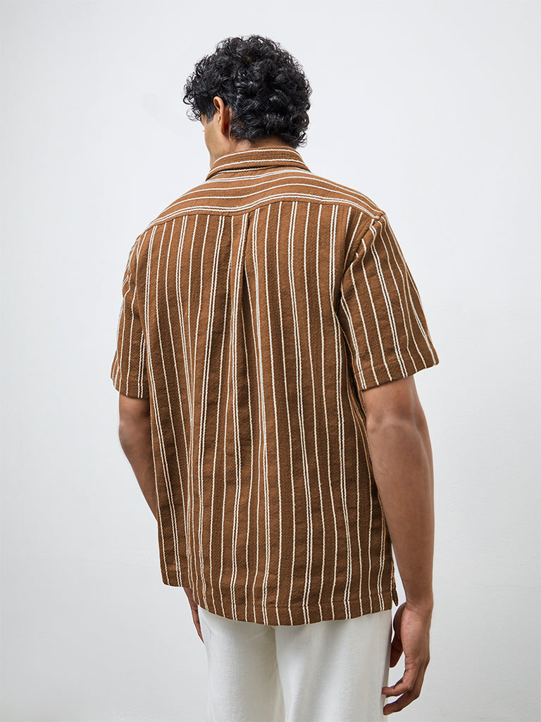 ETA Brown Striped Relaxed-Fit Cotton Shirt