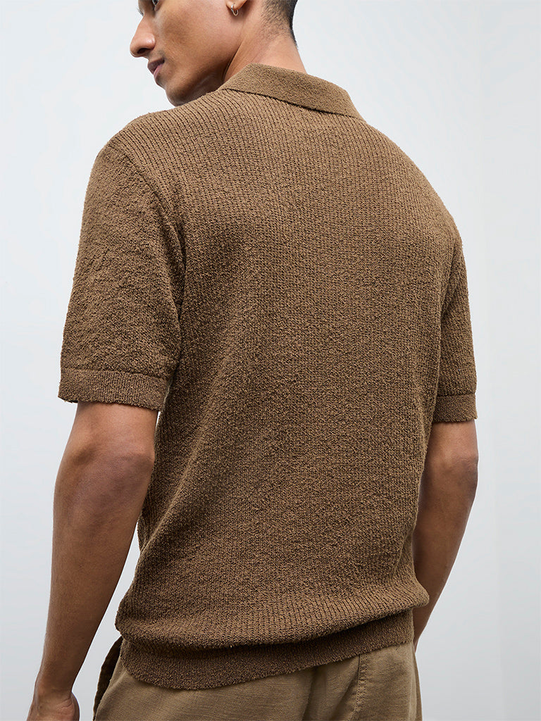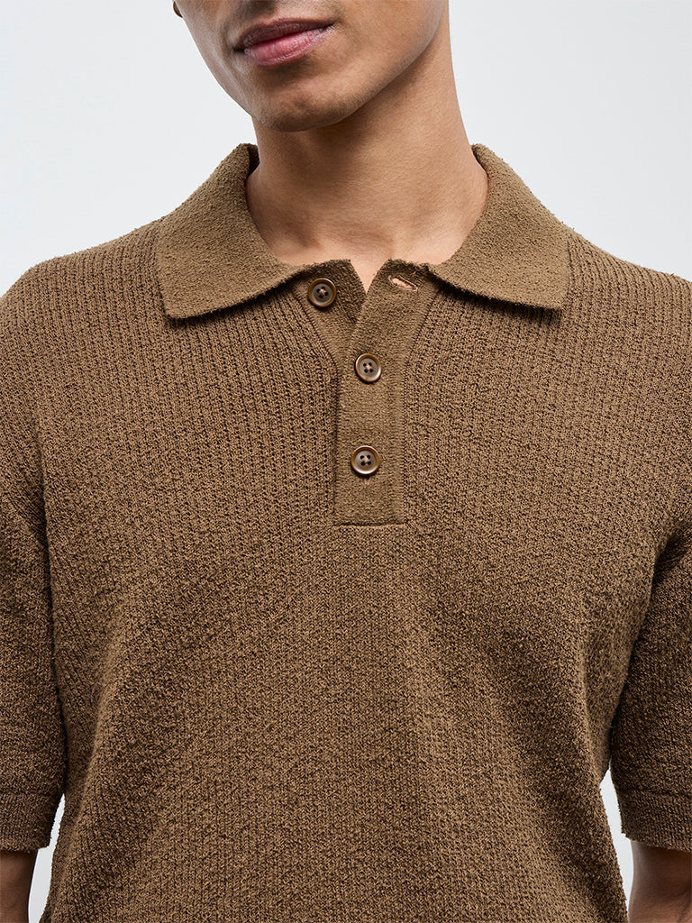 ETA Brown Textured Relaxed-Fit Polo T-Shirt