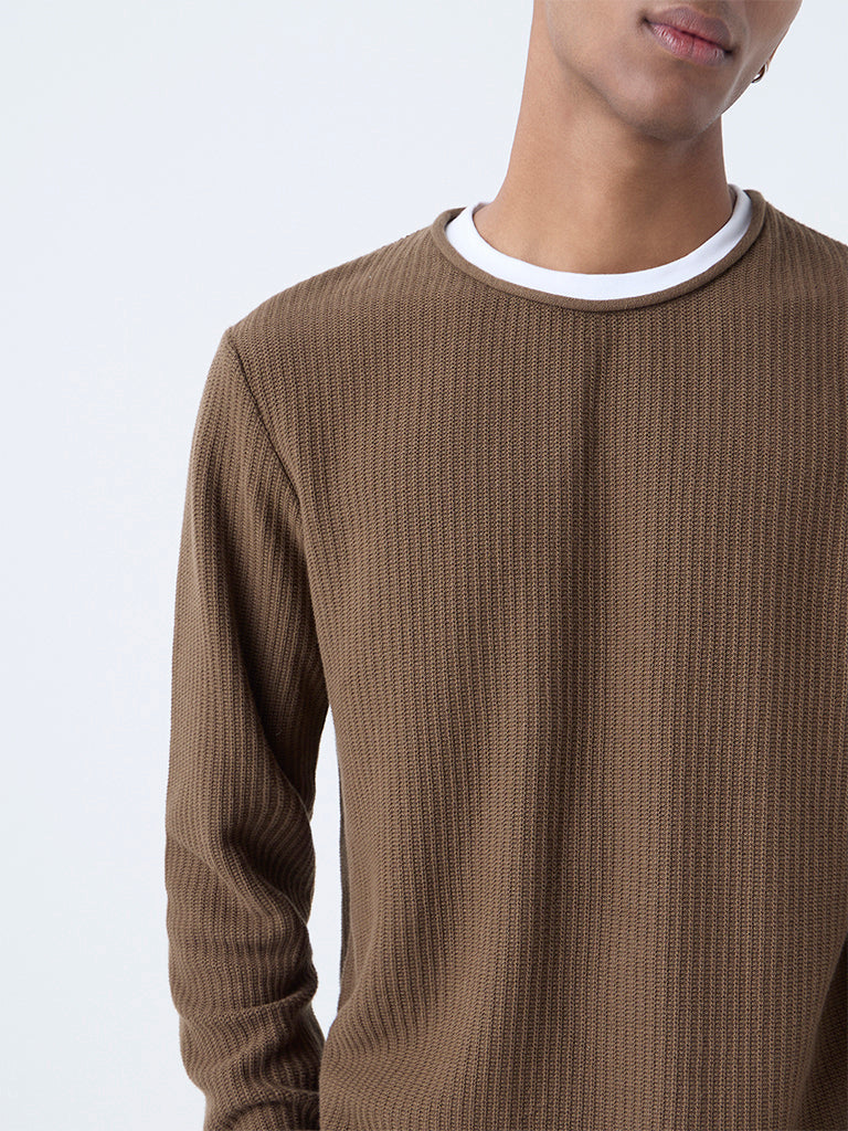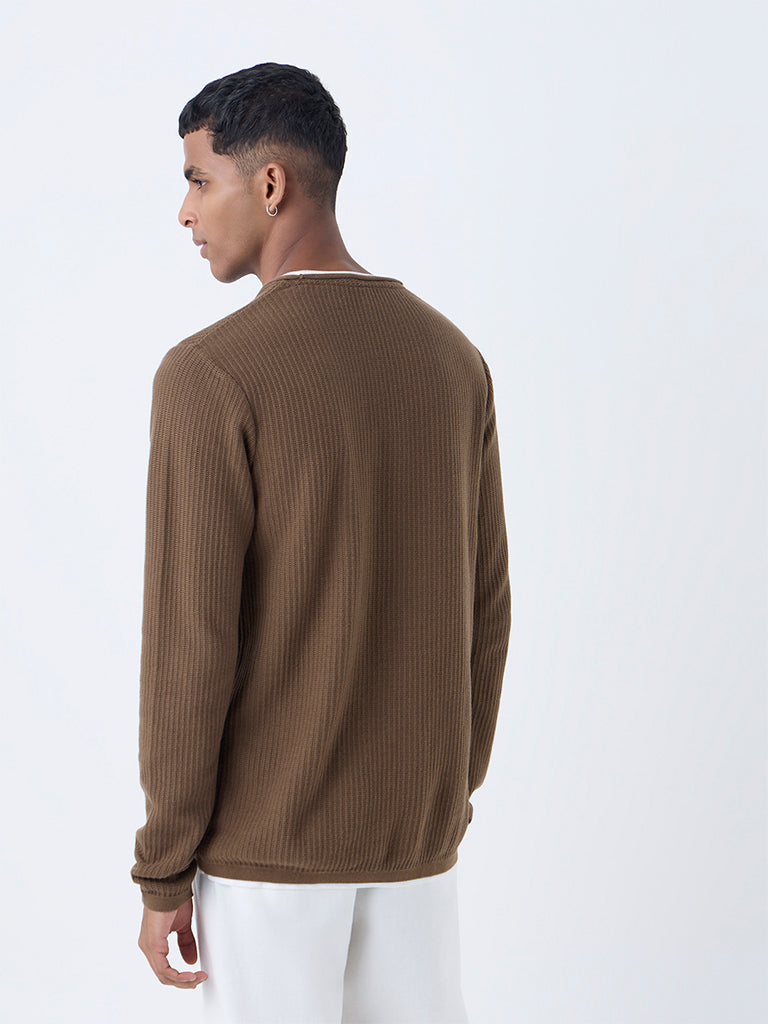 ETA Dark Brown Relaxed-Fit Cotton Sweater