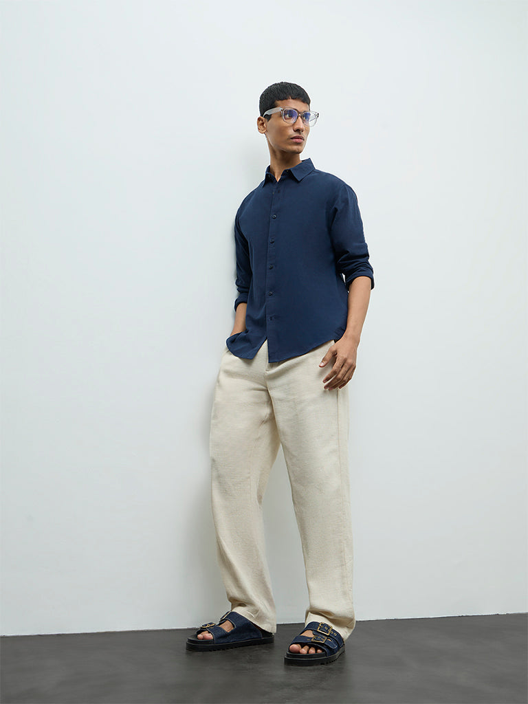 ETA Navy Relaxed-Fit Cotton Shirt