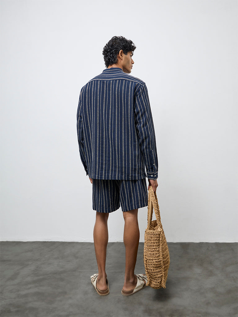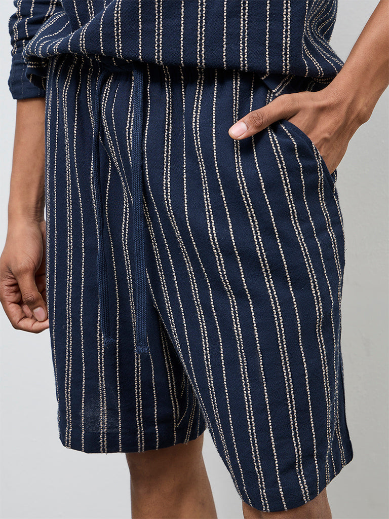 ETA Navy Striped Relaxed-Fit Mid-Rise Cotton Shorts