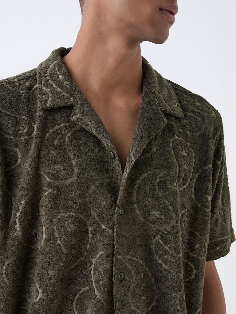 ETA Olive Paisley Relaxed-Fit Cotton-Blend Shirt