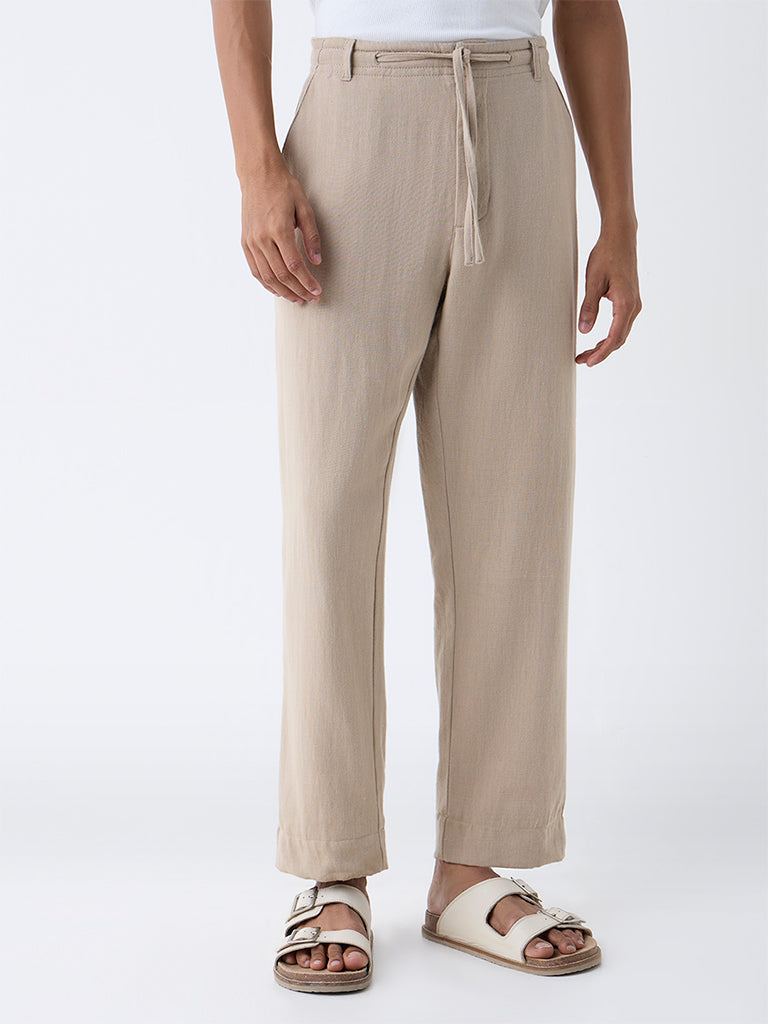 ETA Taupe Solid Relaxed-Fit Mid-Rise Cotton-Blend Chinos