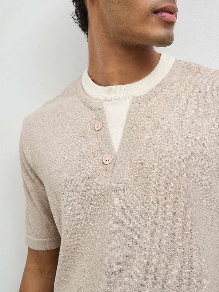 ETA Taupe Textured Relaxed-Fit T-Shirt