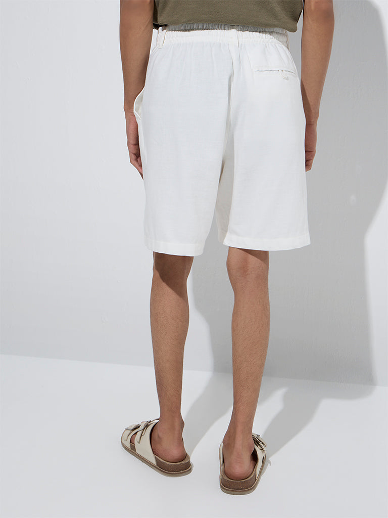ETA White Solid Relaxed-Fit Mid-Rise Cotton-Blend Shorts