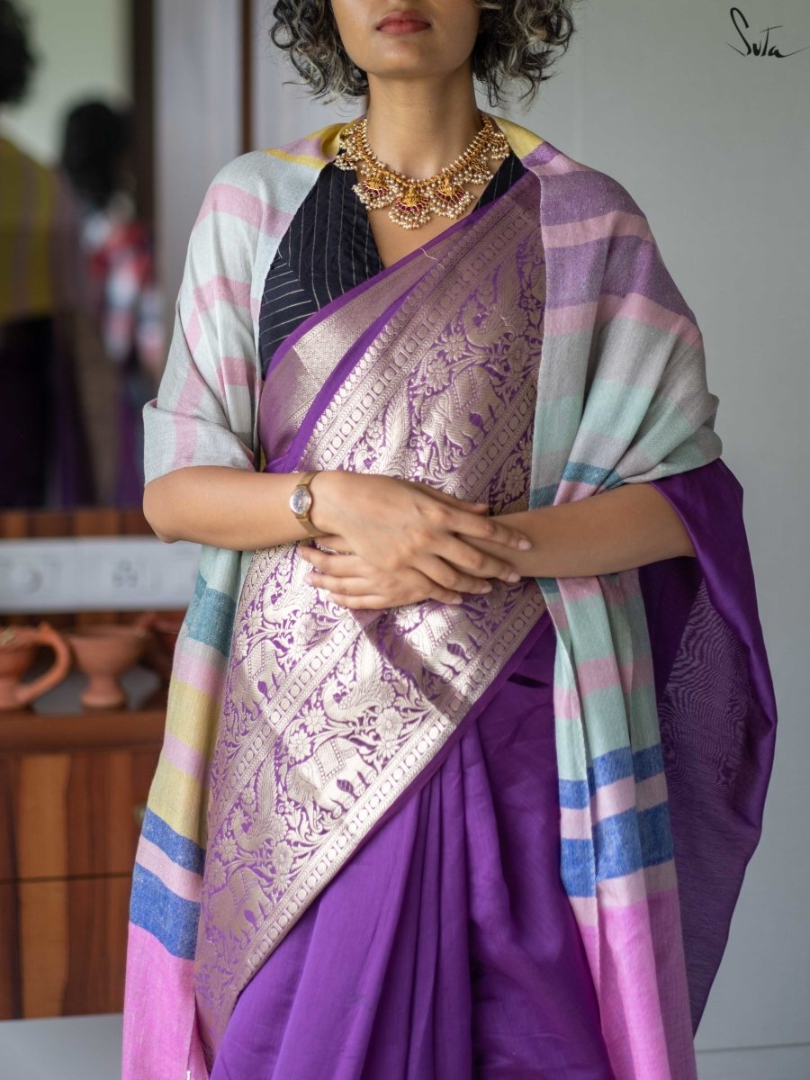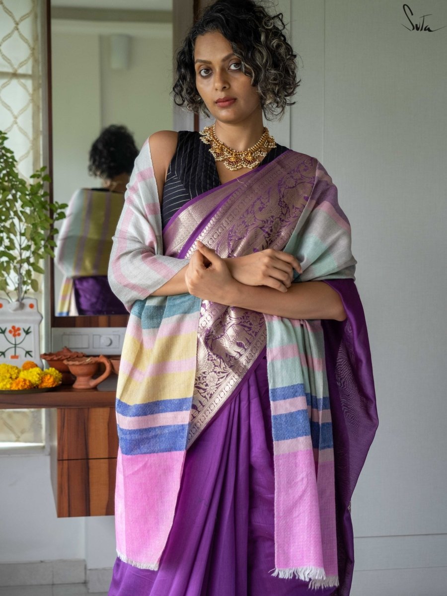 Saree : Su, the model is wearing a saree called Royal Penchant and a blouse called Tami.
