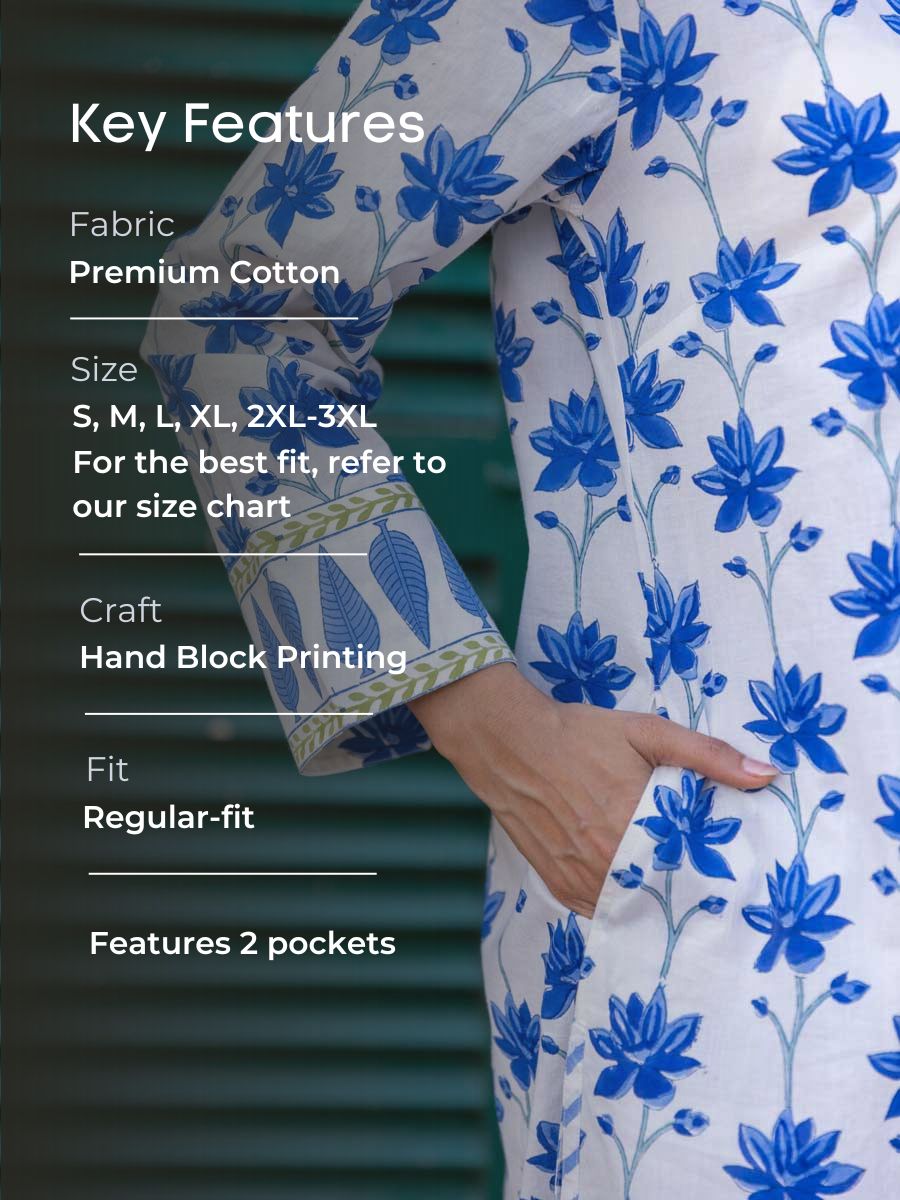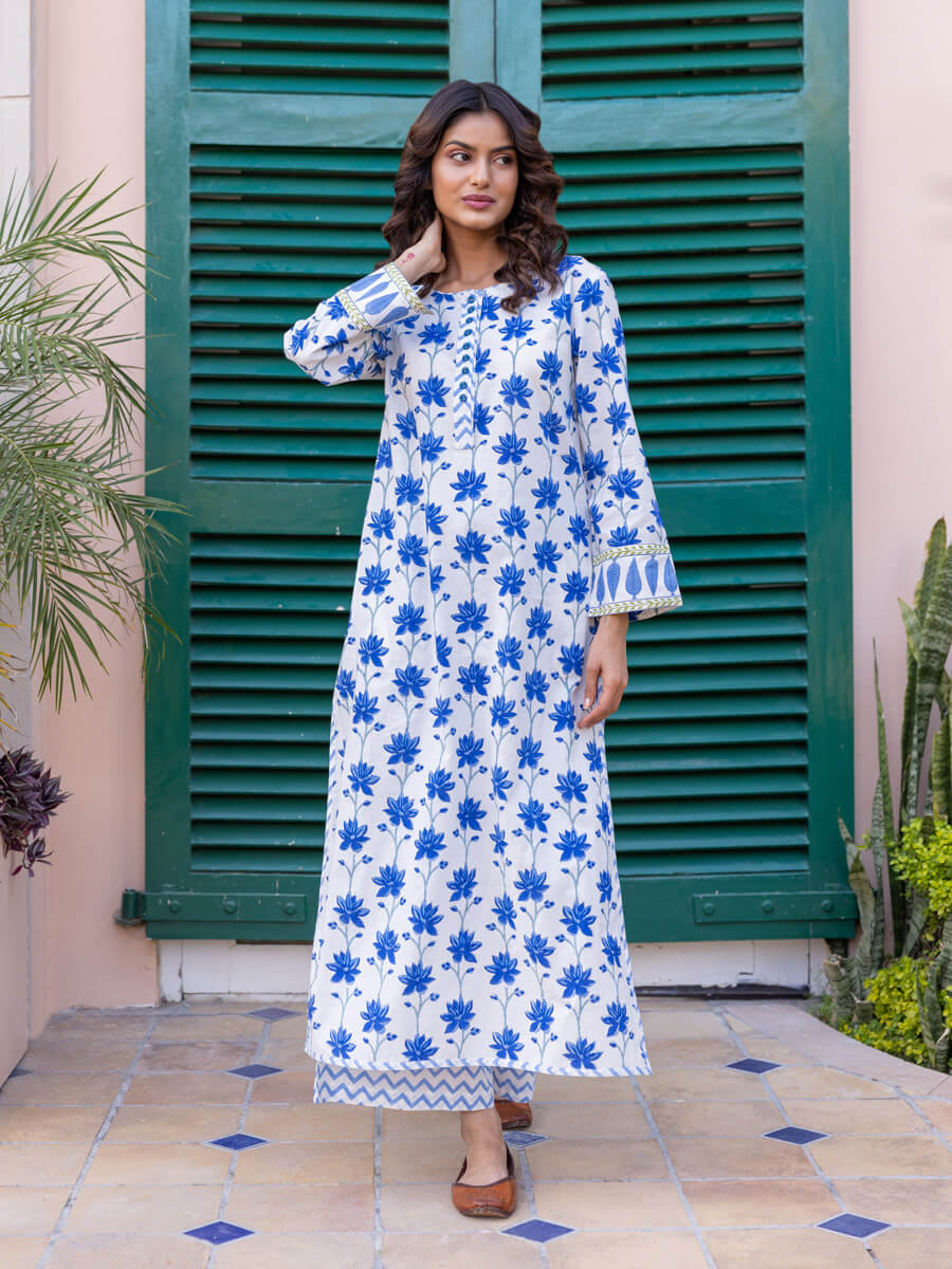 Floral Jaal Block Printed Cotton Long Kurta