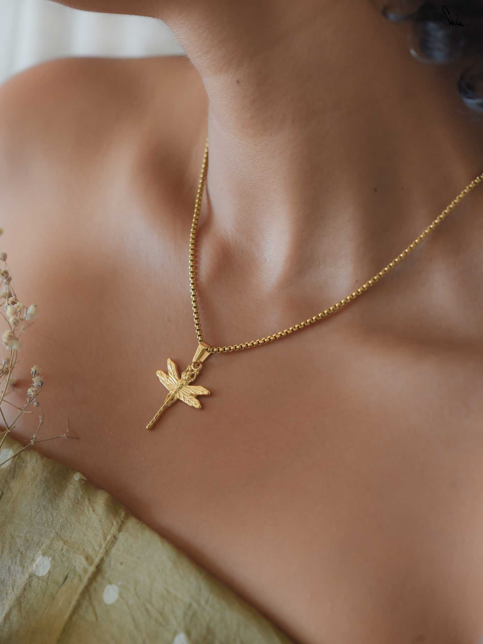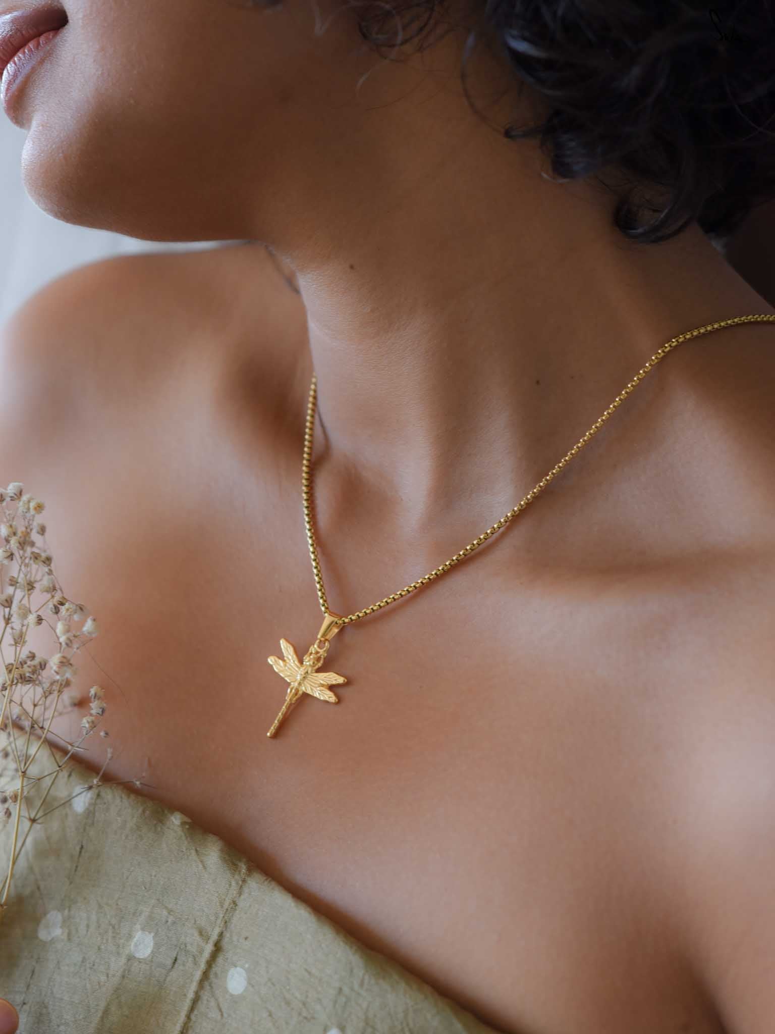 Wings-in-motion pendant in silver-brass alloy with micro-gold clasp. A little bit of sky for the dreamer in you. For all day, every day!