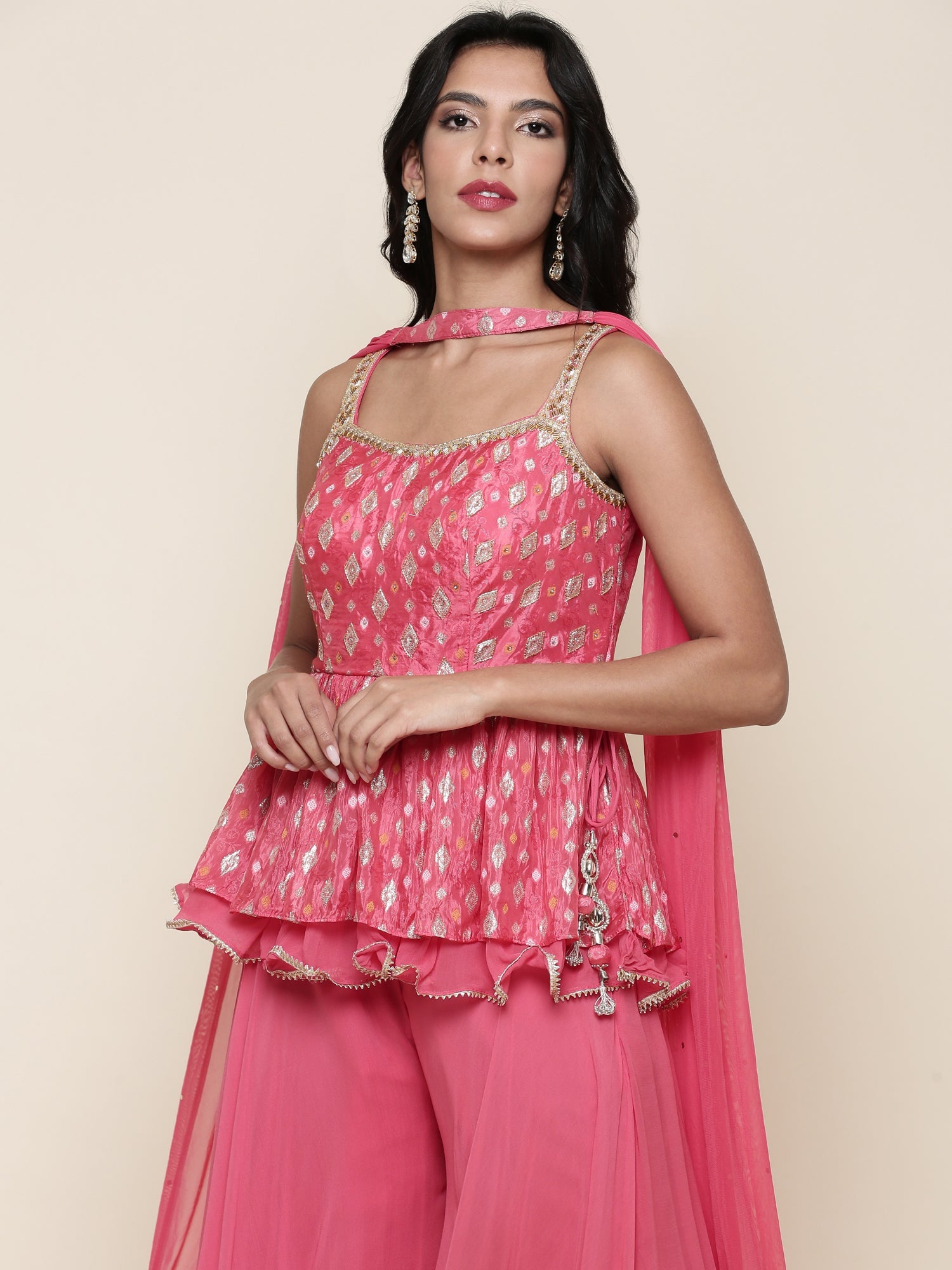 Ghajari georgette peplum and palazzo three piece set