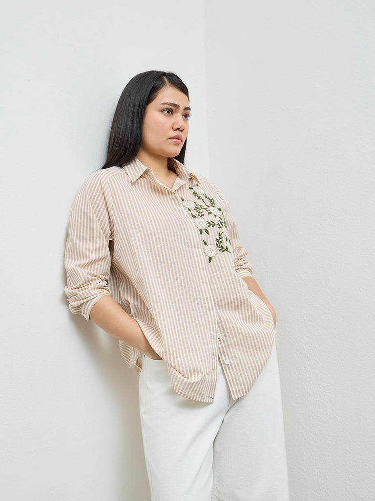 Gia Beige Striped Cotton Shirt