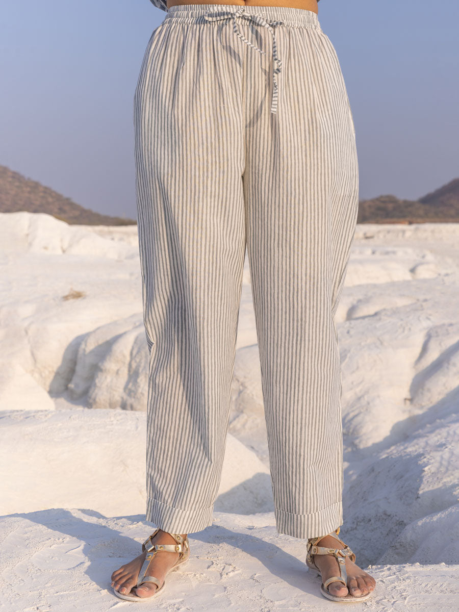 Grey Stripes Cotton Pants