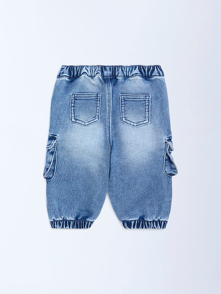 Add a dash of cool to your baby’s everyday looks with these blue denim joggers from HOP Baby. Designed with a gentle faded effect, they’re made from lightweight, baby-friendly fabric that allows easy movement. The drawstring waistband ensures a snug fit, while multiple pockets lend a mini-stylish vibe to this comfy staple.