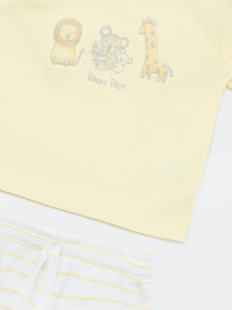 HOP Baby Boys Yellow Animal Printed Cotton T-Shirt and Shorts Set