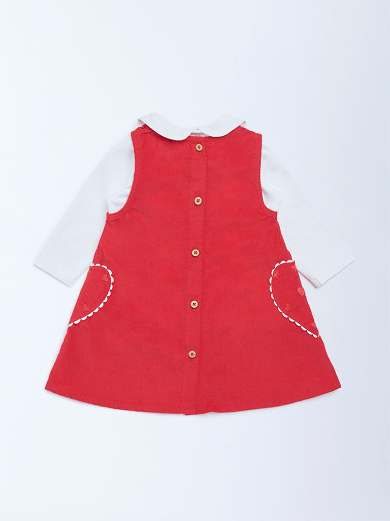 HOP Baby Red Cotton Pinafore and T-Shirt Set