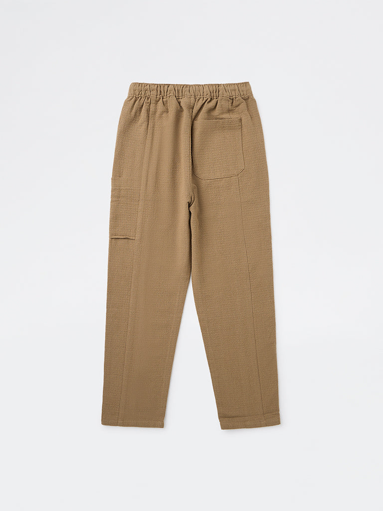 HOP Kids Boys Taupe Textured Mid-Rise Cotton Trousers