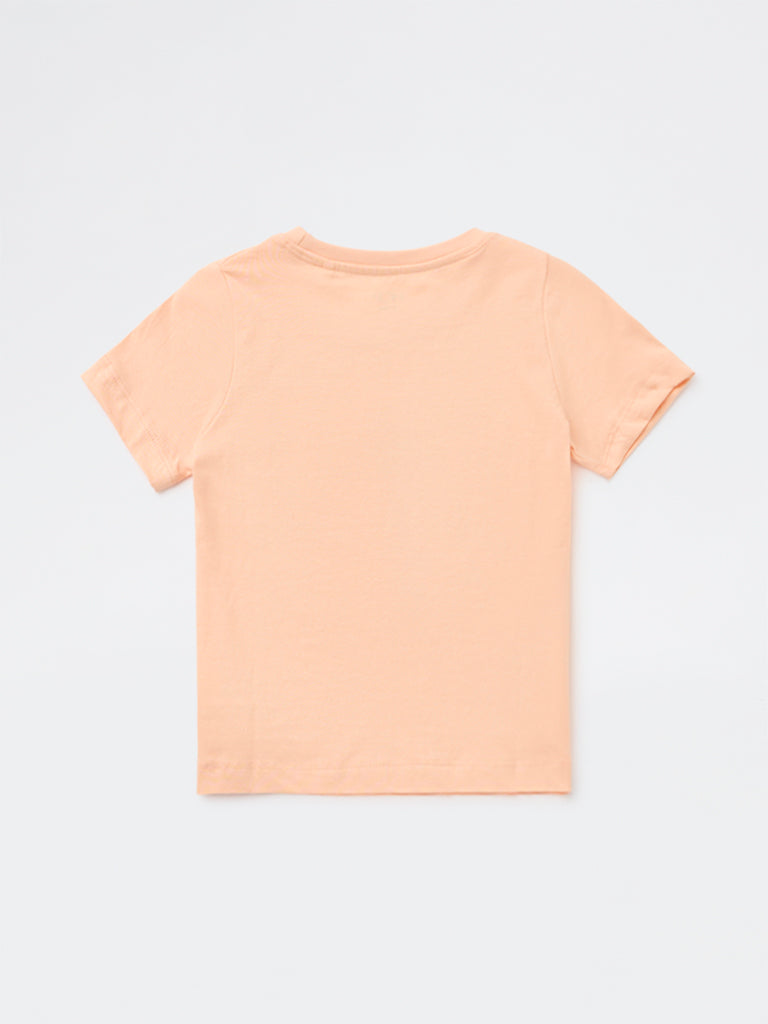 HOP Kids Girls Peach Tropical Printed Cotton T-Shirt