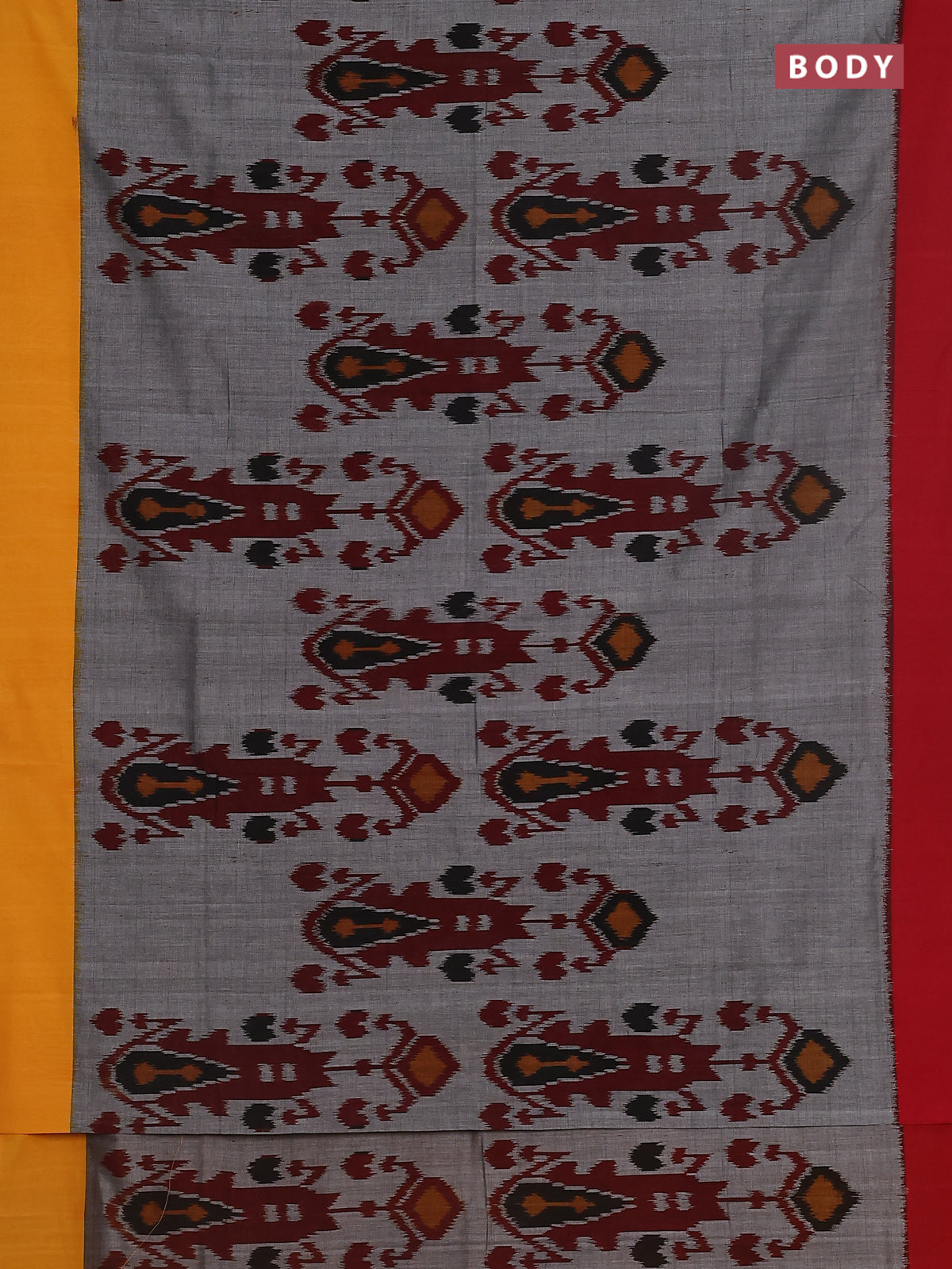 Ikat cotton saree grey with allover ikat weaves and ganga jamuna border