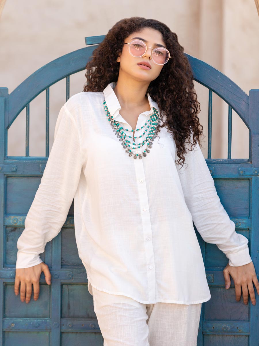 - A versatile ivory plain shirt