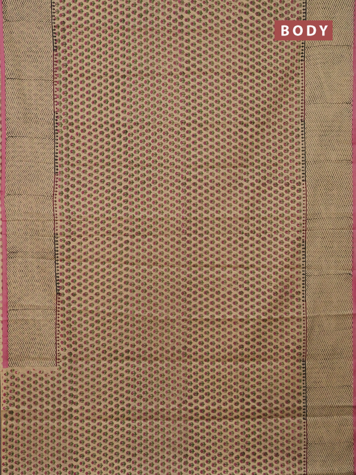 Jaipur cotton saree beige and pink with allover butta prints and printed border