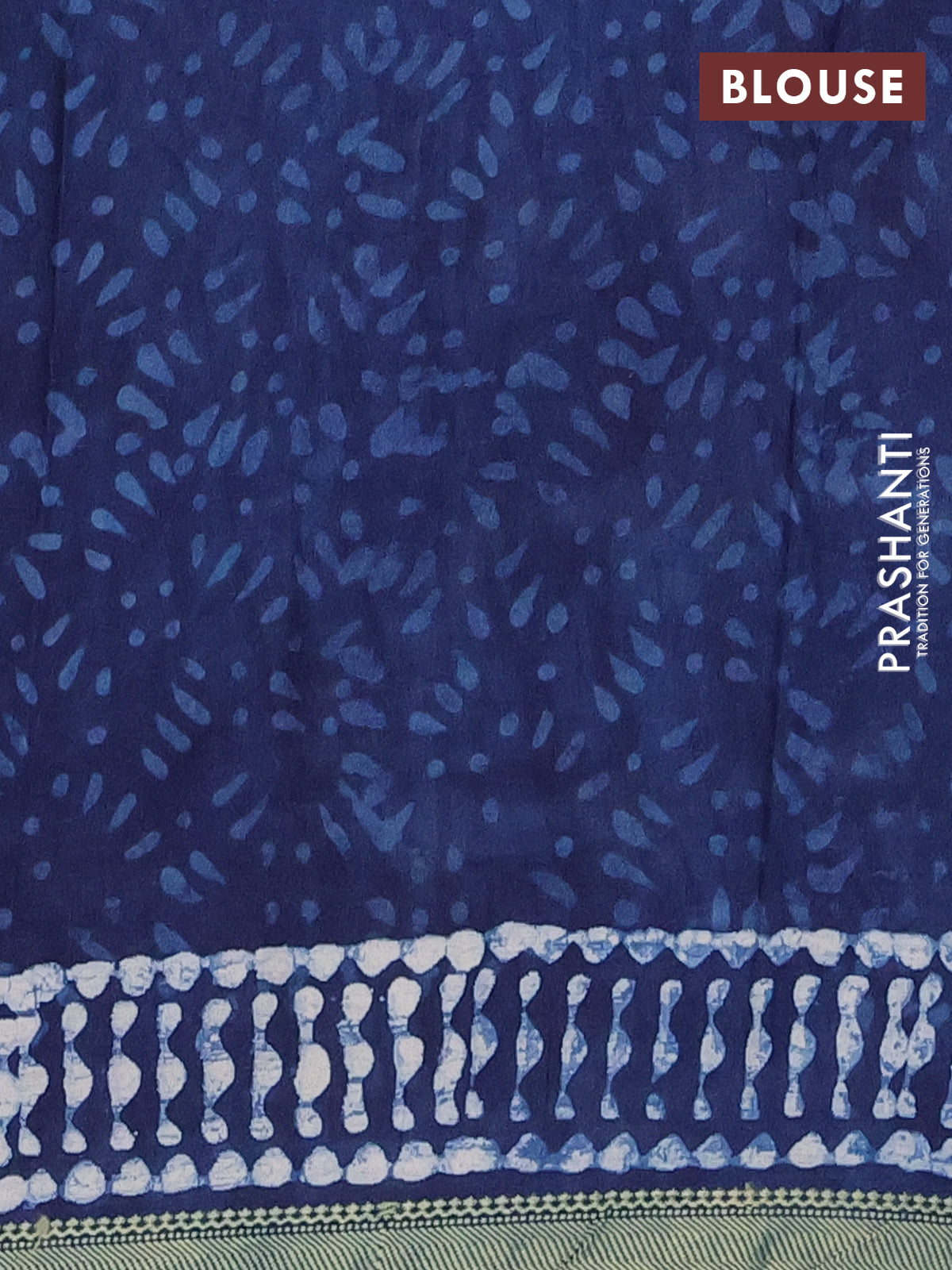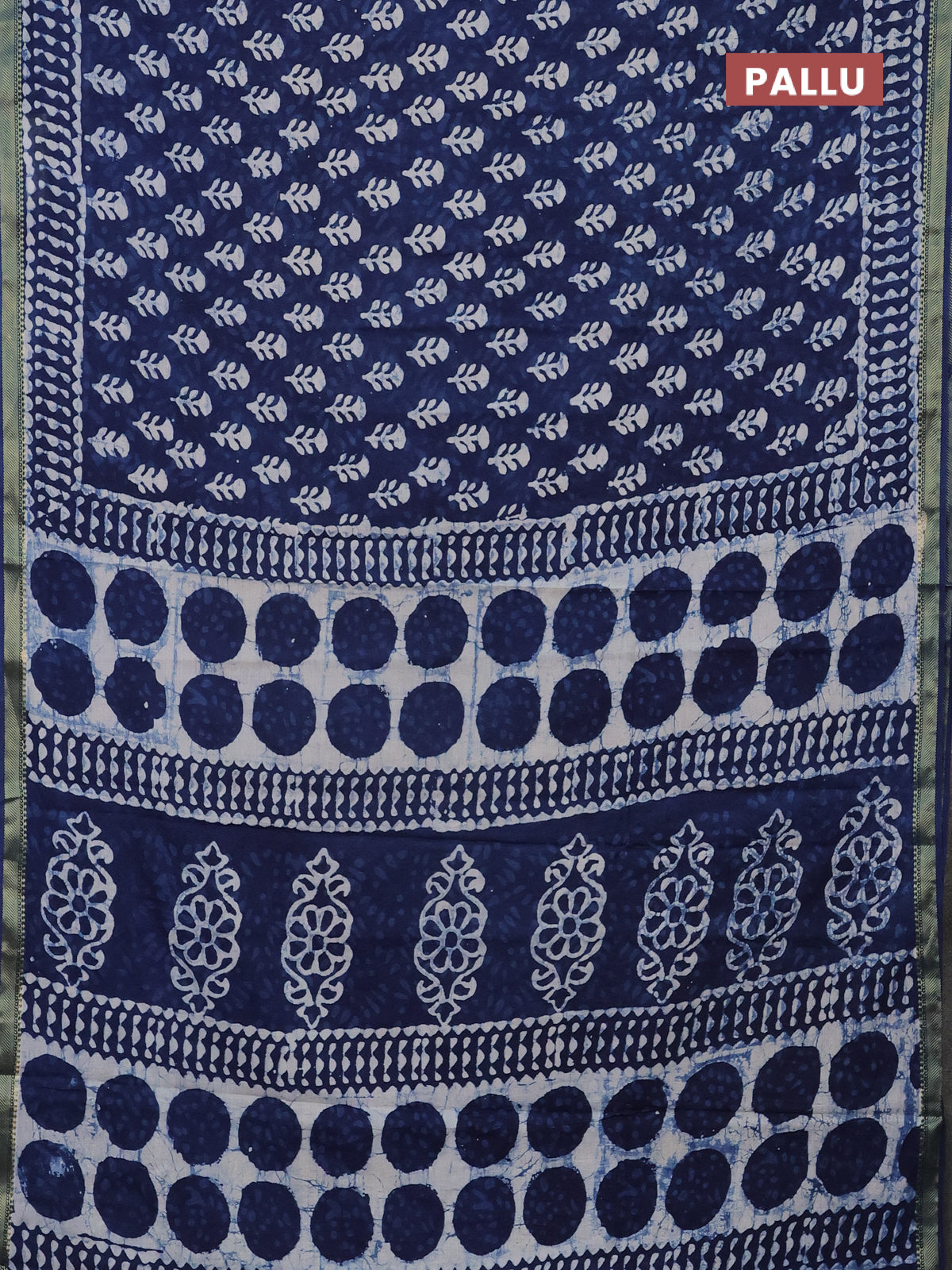 Jaipur cotton saree navy blue and off white with allover batik prints and printed border