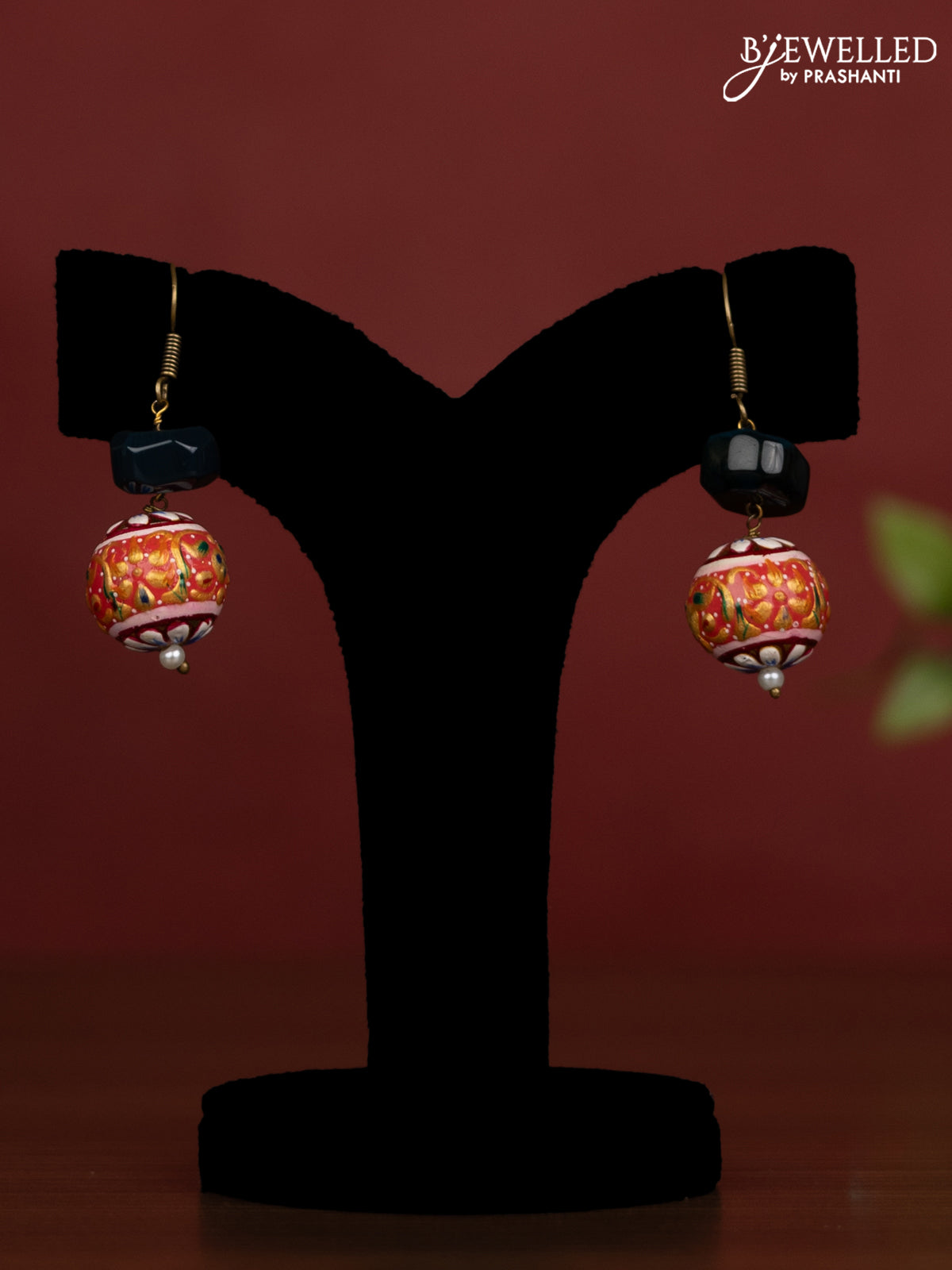 Jaipur crystal beaded maroon and blue beads necklace with earrings