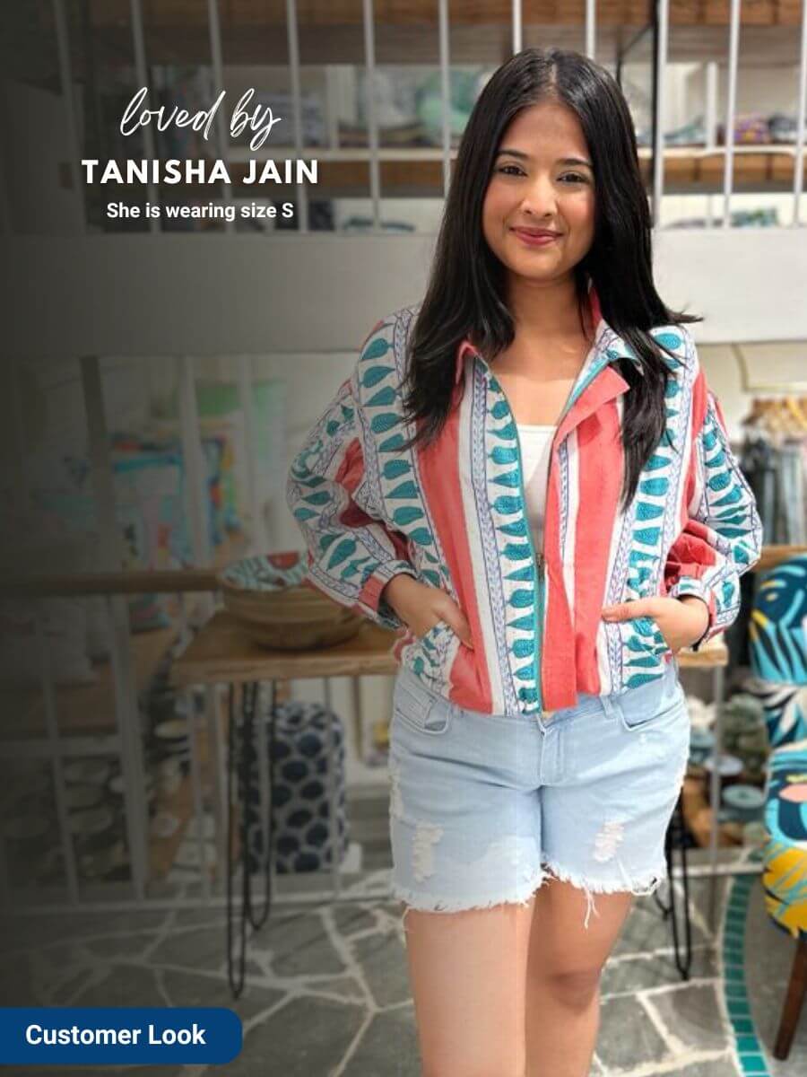 Jane Kantha Embroidered Block Printed Bomber Jacket