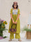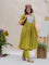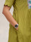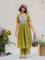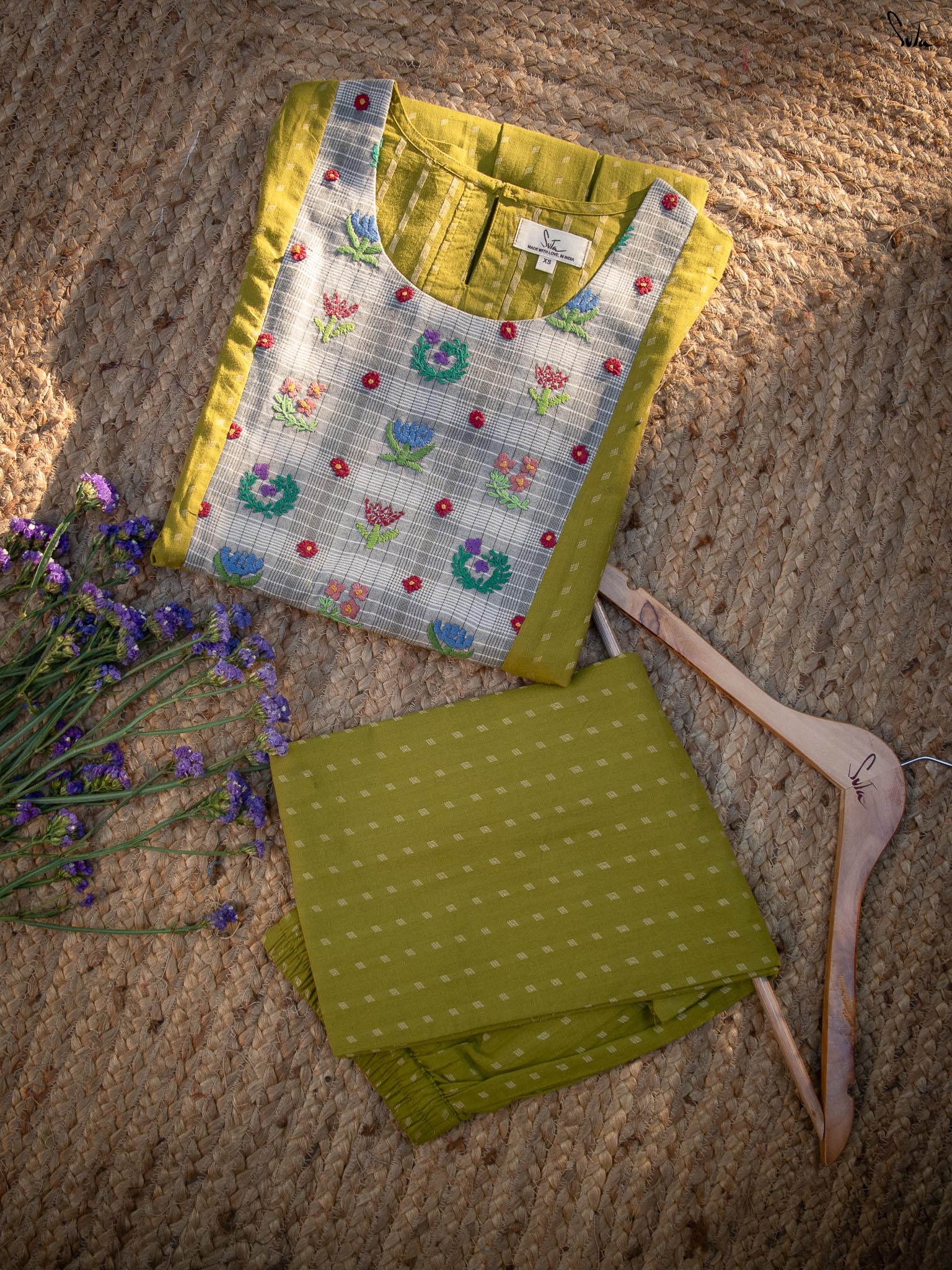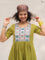 The green cotton kurta is finished with a contrast hand-embroidered floral yoke - detailed, thoughtful, and quietly beautiful. It has a classic round neck, short sleeves with scalloped edges, and pockets on both sides for everyday ease. The matching green cotton pants complete the set with a scalloped hem, elasticated waist, and side pockets.